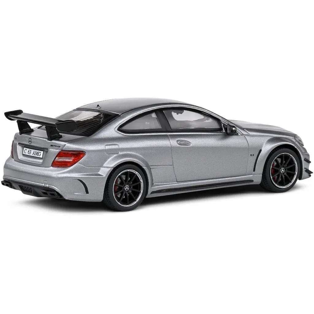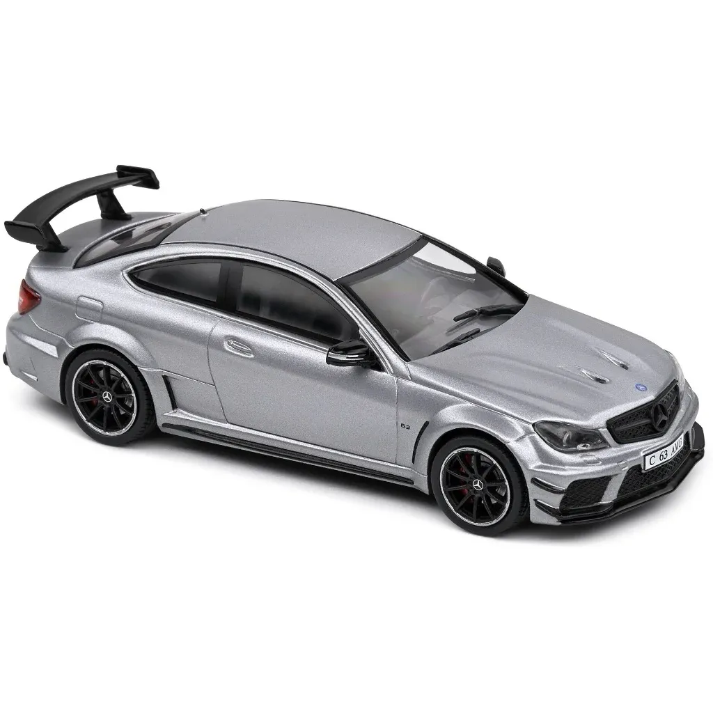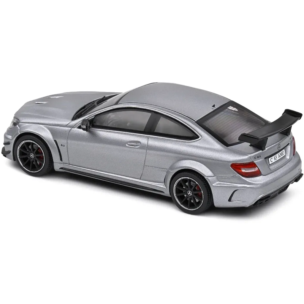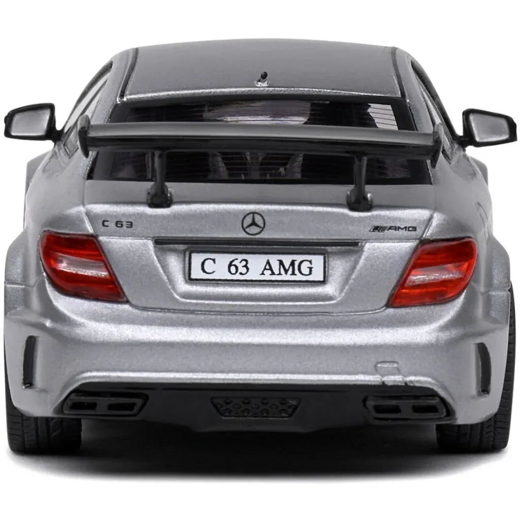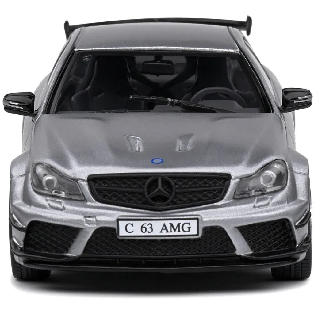 Matgrå (metallic) Mercedes-Benz C63 AMG Black Series, modelår 2011, fra Solido i skala 1:43 (11 cm).