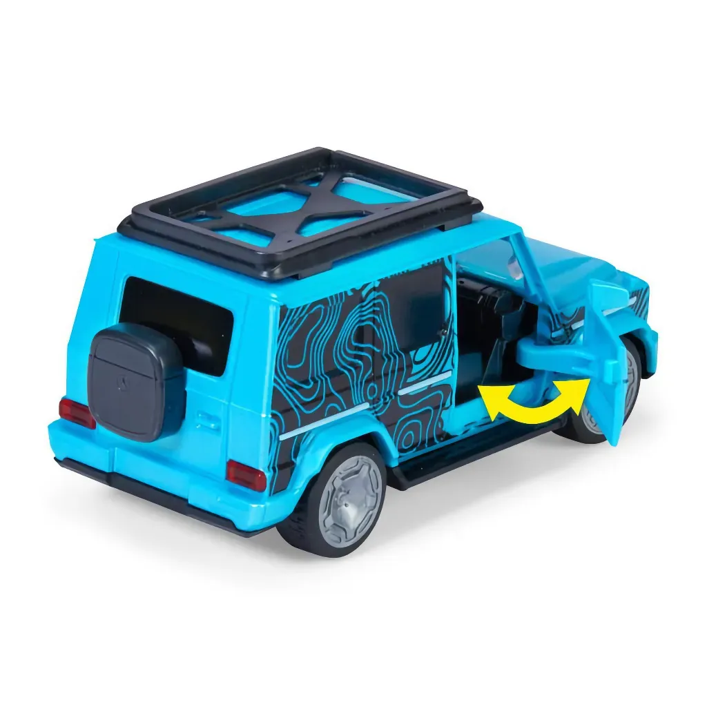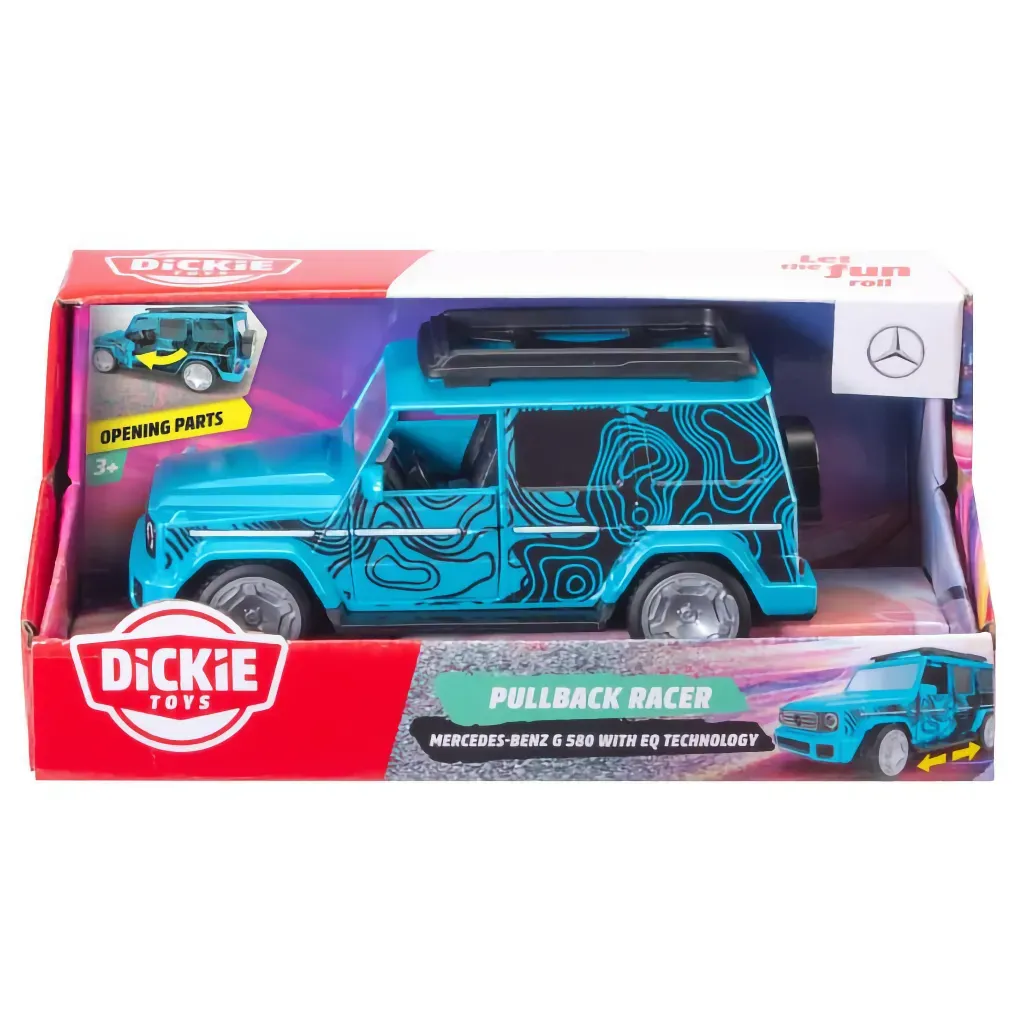 Blå Mercedes-Benz G 580 EQ som legetøjsbil fra Dickie Toys.