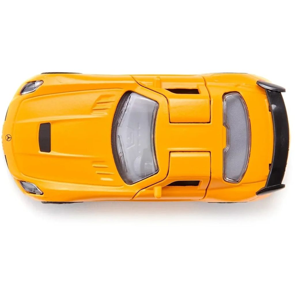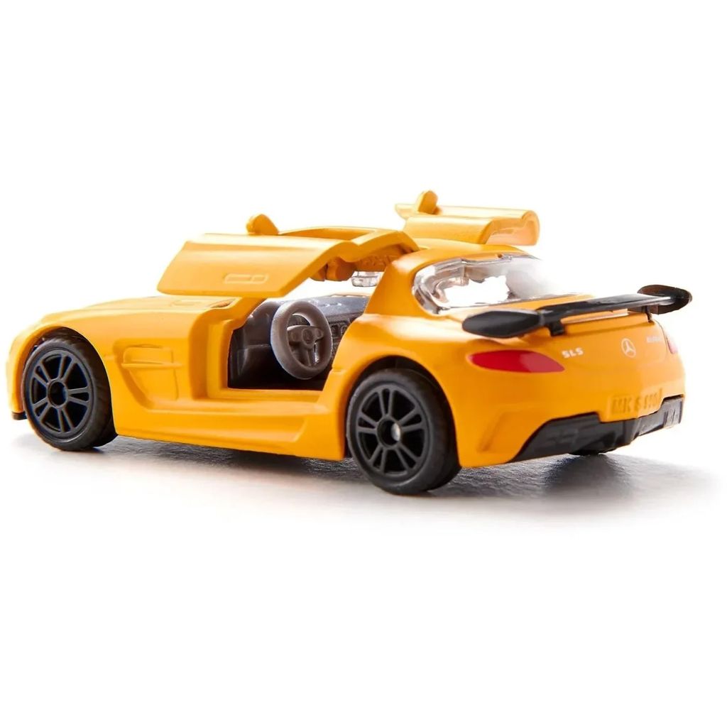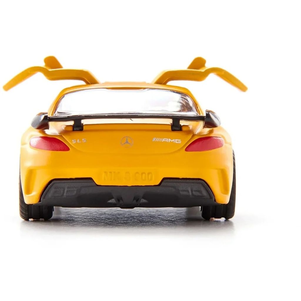 Mercedes-Benz SLS AMG Black Series i gul farve fra Siku. Bilen er 7,6 cm lang og har døre, der kan åbnes.
