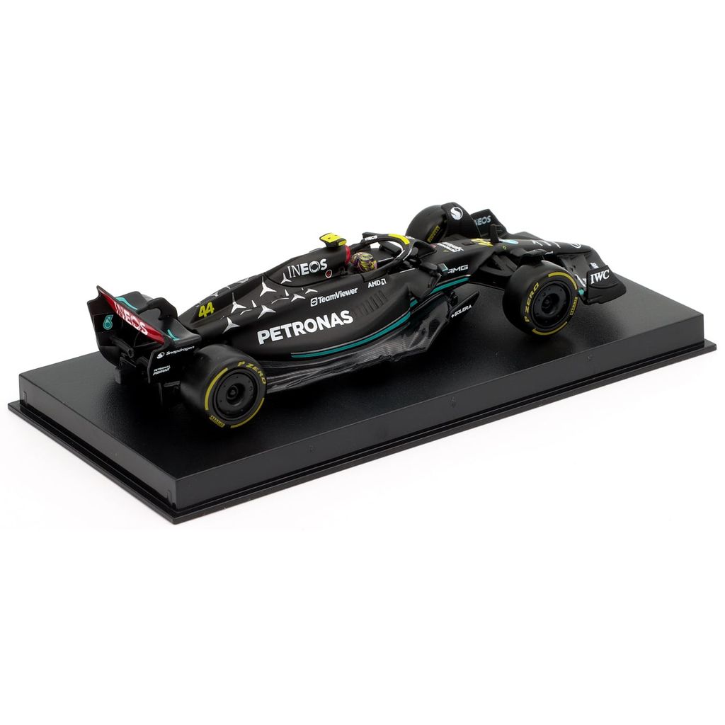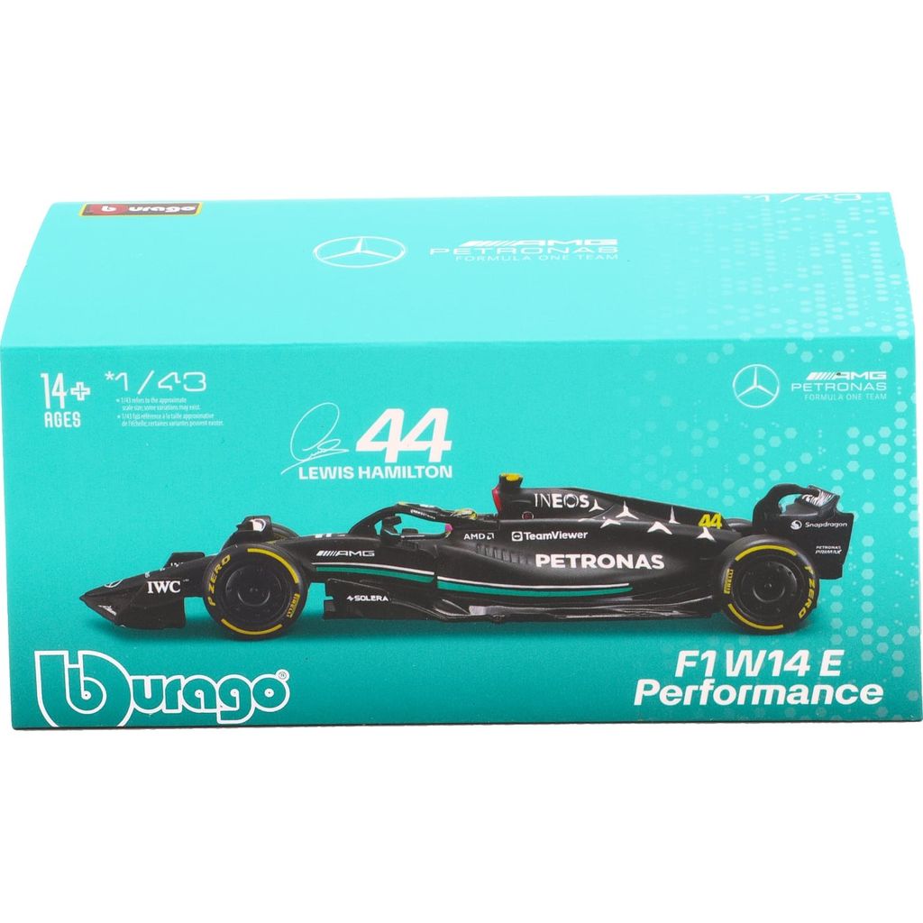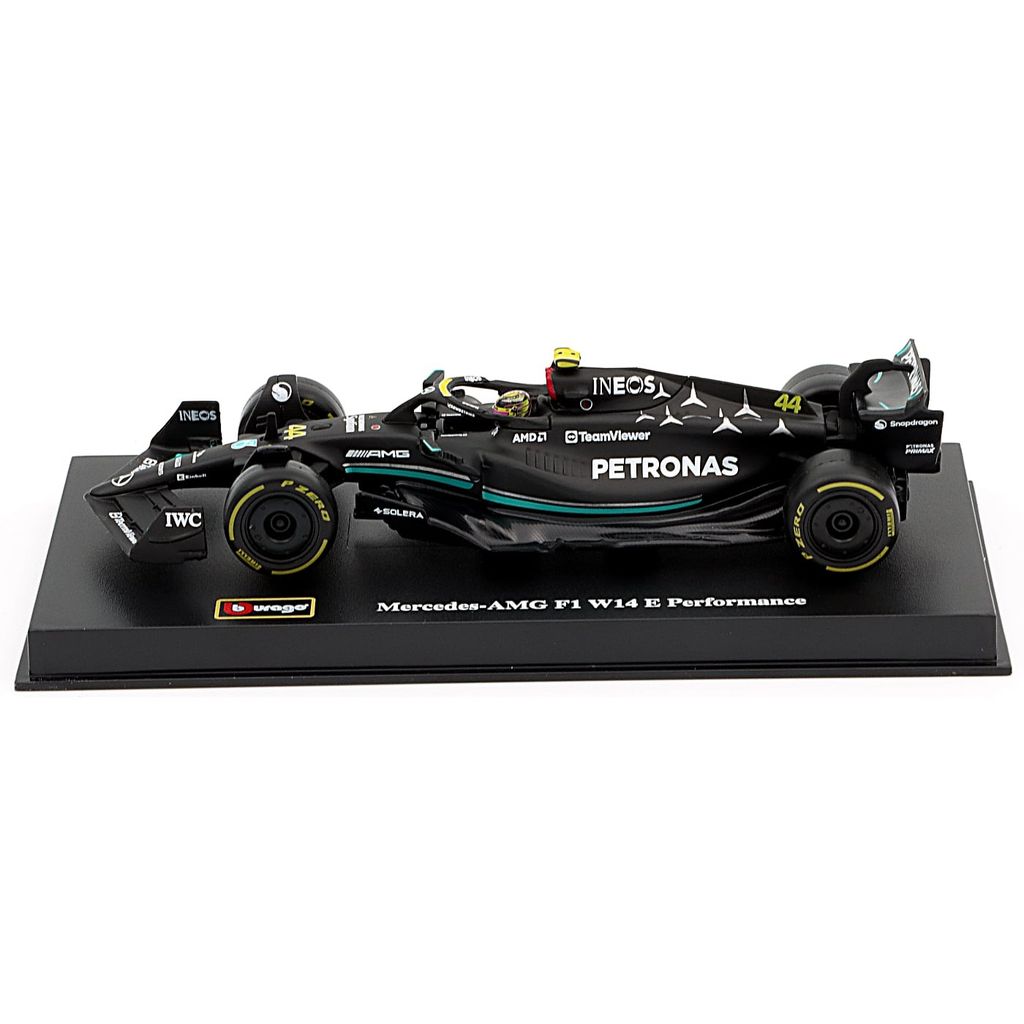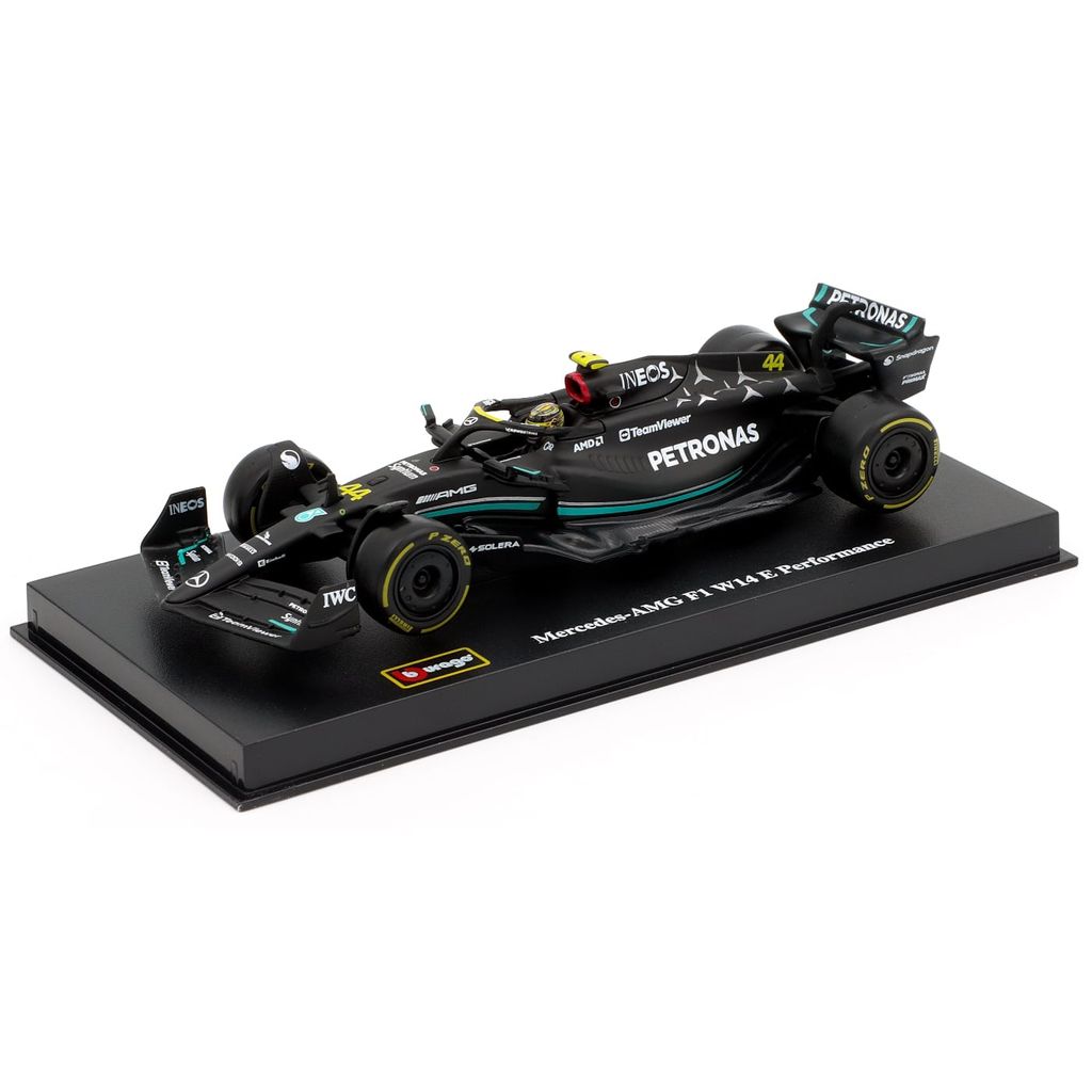 Model af Mercedes-AMG F1 W14 E Performance Formel 1-bilen fra Mercedes. Denne bil, nummer 44, blev kørt i sæsonen 2023 af Lewis Hamilton, som sluttede på tredjepladsen med 234 point i sæsonen. Bilen er en del af Mercedes-AMG PETRONAS F1 Team fra Brackley i Storbritannien.