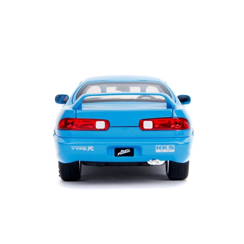 Kendt fra Fast & Furious-filmene er denne blå Acura Integra (modelår 1994). Her kommer den som flot og detaljeret legetøj/model fra Jada Toys i skala 1:24 (20 cm).