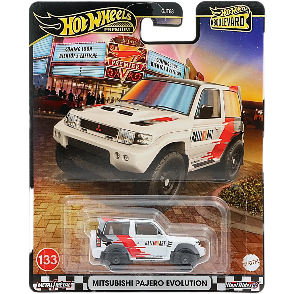Hvid Mitsubishi Pajero Evolution Ralliart fra Hot Wheels og Boulevard-serien.