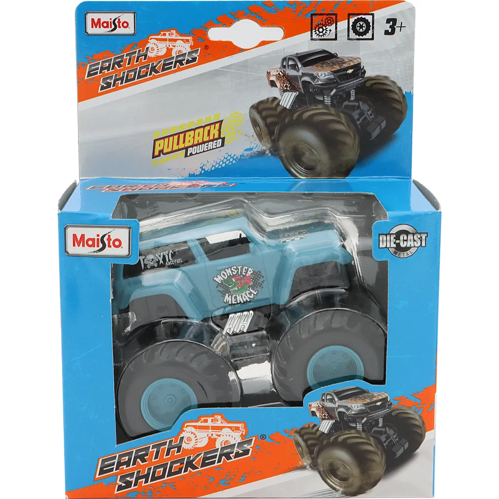 Sej monstertruck med gummihjul og pullback-funktion fra Maisto.