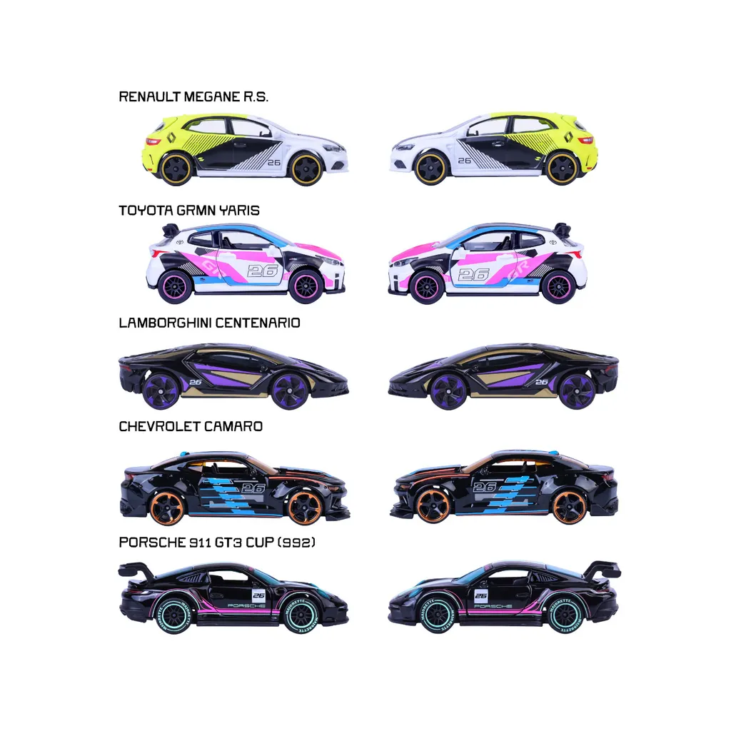 | Model | Centenario, Megane R.S., 911 GT3 CUP (992), GRMN Yaris, Camaro |