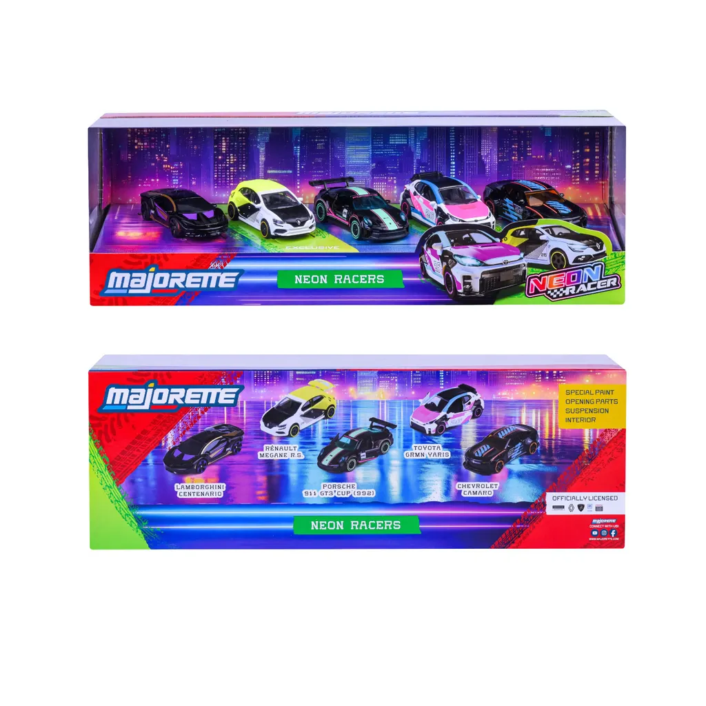 Neon Racers giftpack. En 5-pak med mega seje neonbiler fra producenten Majorette.