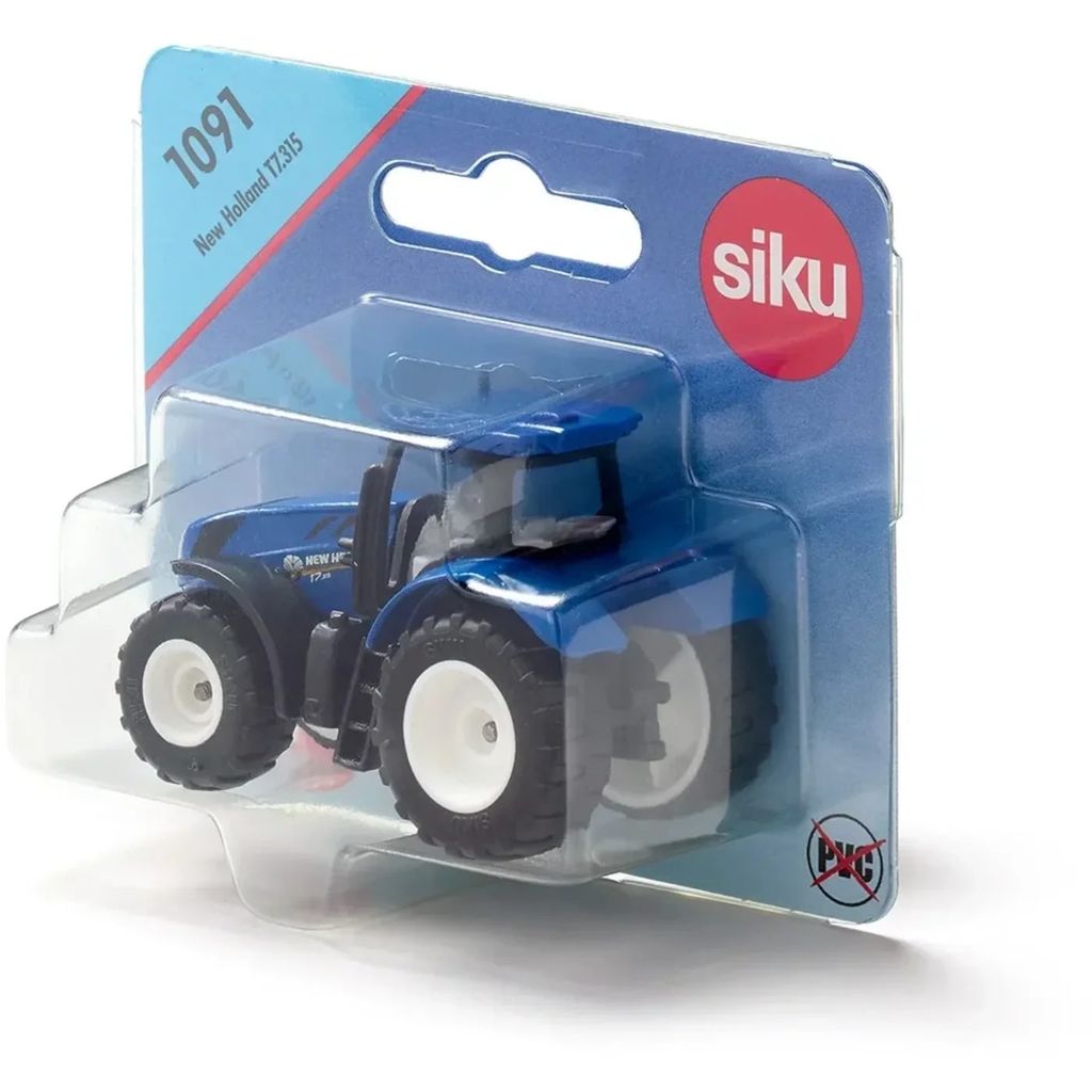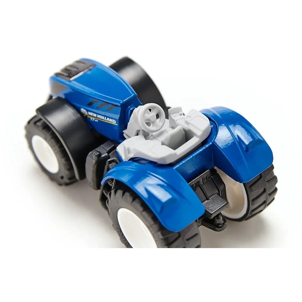 New Holland T7.315 fra Siku. Lille (6 cm) legetøjstraktor med gummidæk.