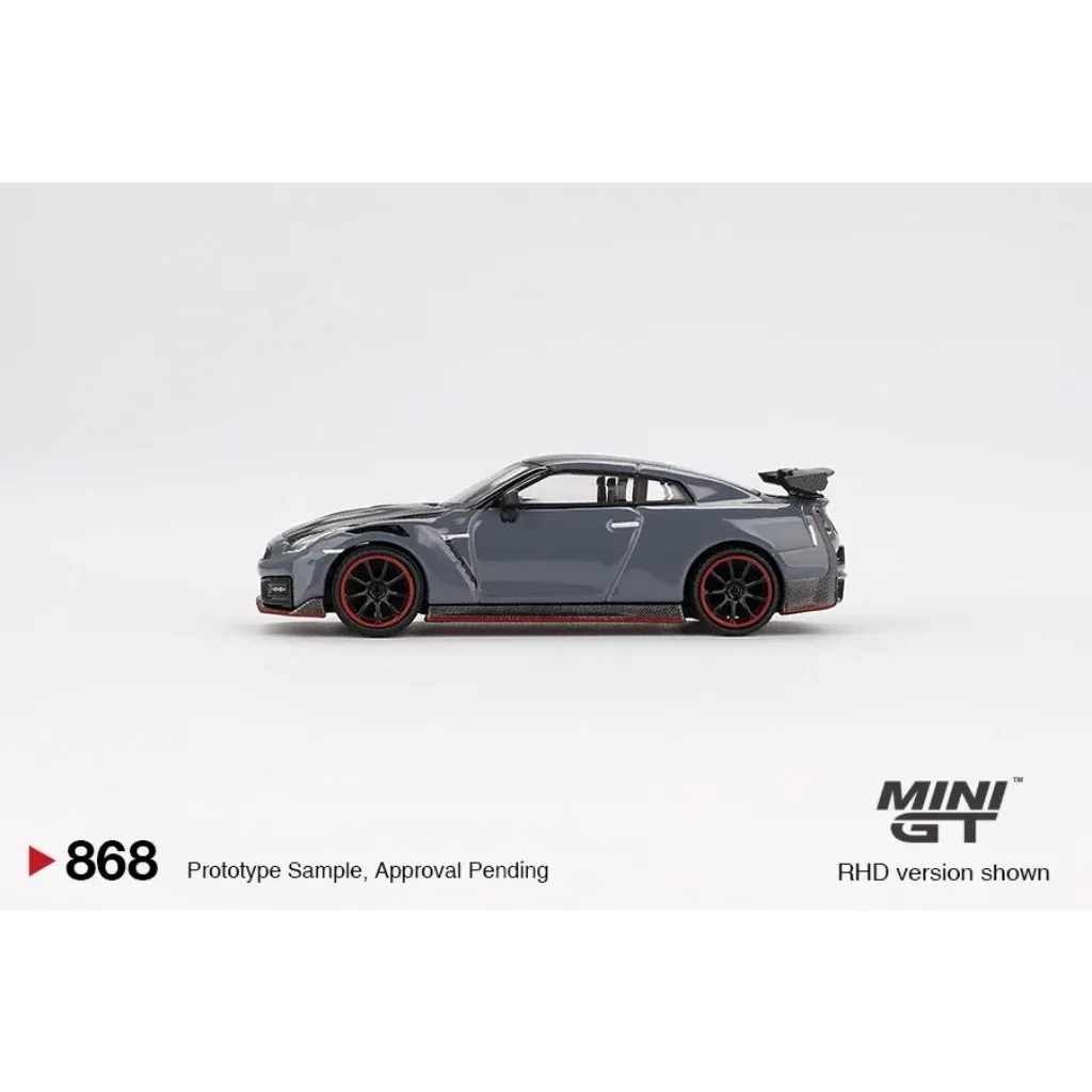 Modellens fulde navn er "Nissan GT-R Nismo (R35) 2024 Stealth Gray RHD", hvor RHD står for højrestyret.