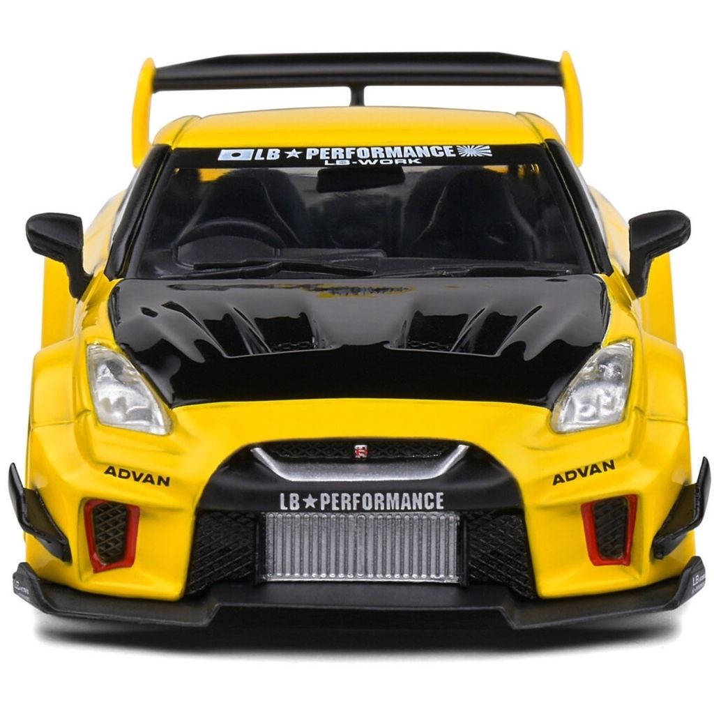 Nissan GT-R (R35) LBWK Silhouette, modelår 2019, i gul fra Solido i skala 1:43 (11 cm).