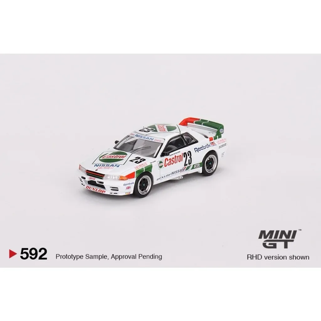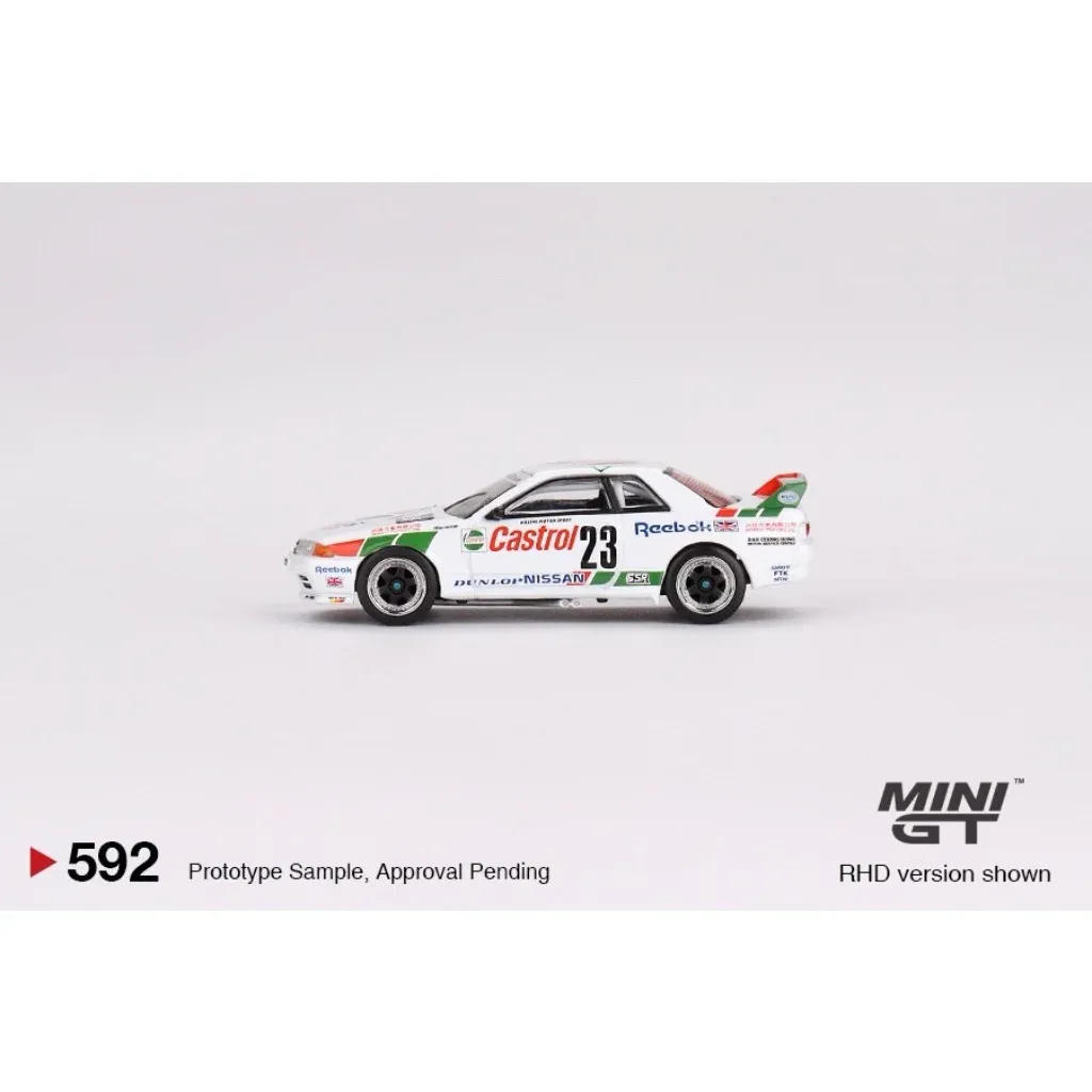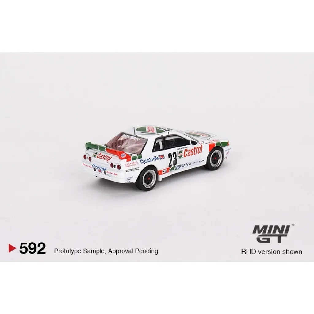 Nissan Skyline GT-R (R32) Gr. A #23 1990 Macau Guia Race Winner fra Mini GT i skala 1:64 (ca. 7 cm). Bilen har produktnummer 592 hos Mini GT.