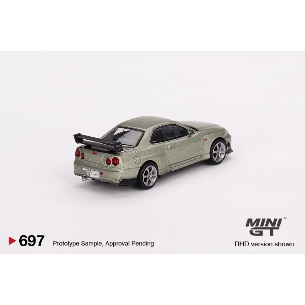 Modellens fulde navn er "Nissan Skyline GT-R (R34) Tommykaira R-z Millennium Jade RHD". RHD betyder, at bilen har højrestyring.