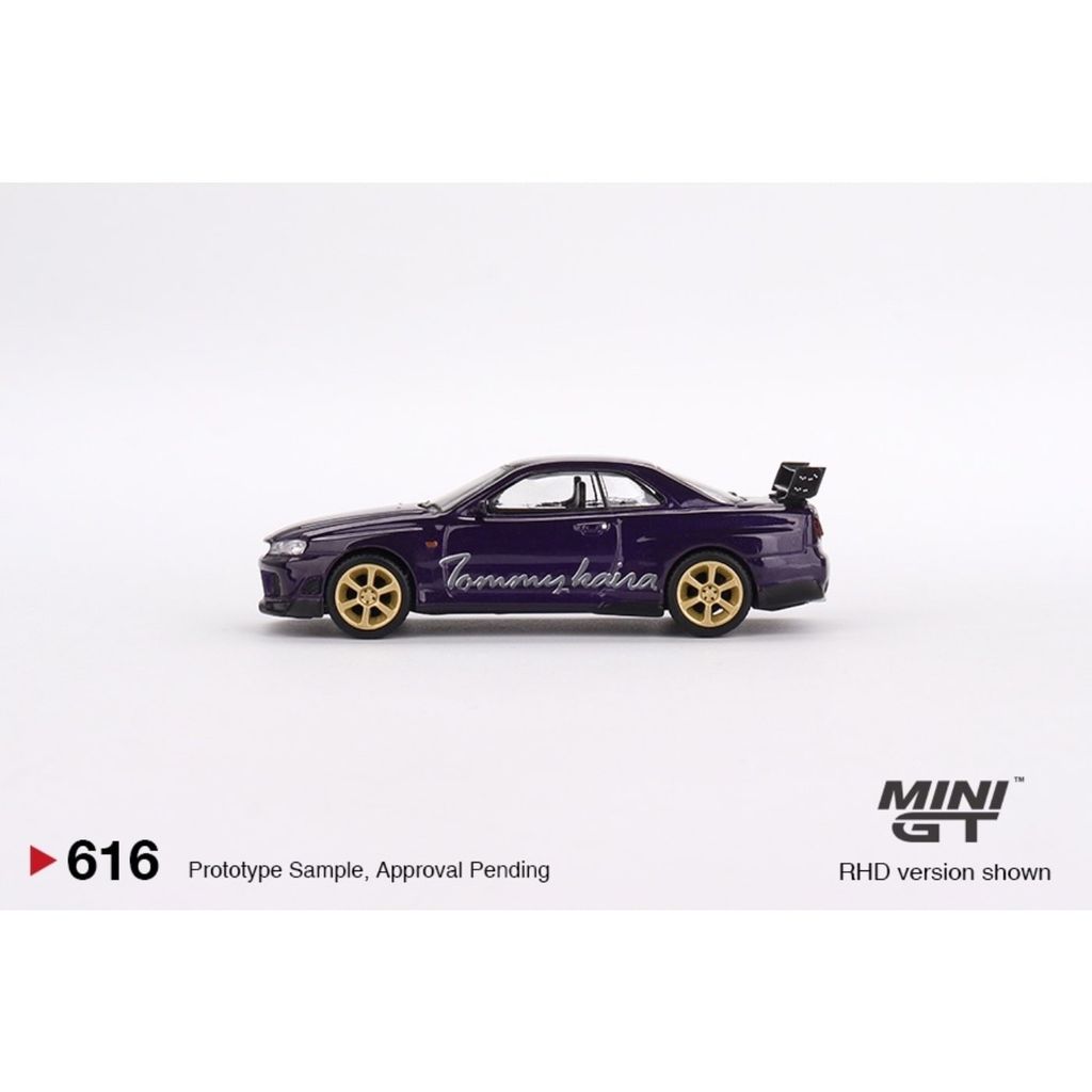 Modellens fulde navn er "Nissan Skyline GT-R (R34) Tommykaira R-z Midnight Purple RHD". RHD betyder, at bilen har rattet i højre side (højrekørsel).