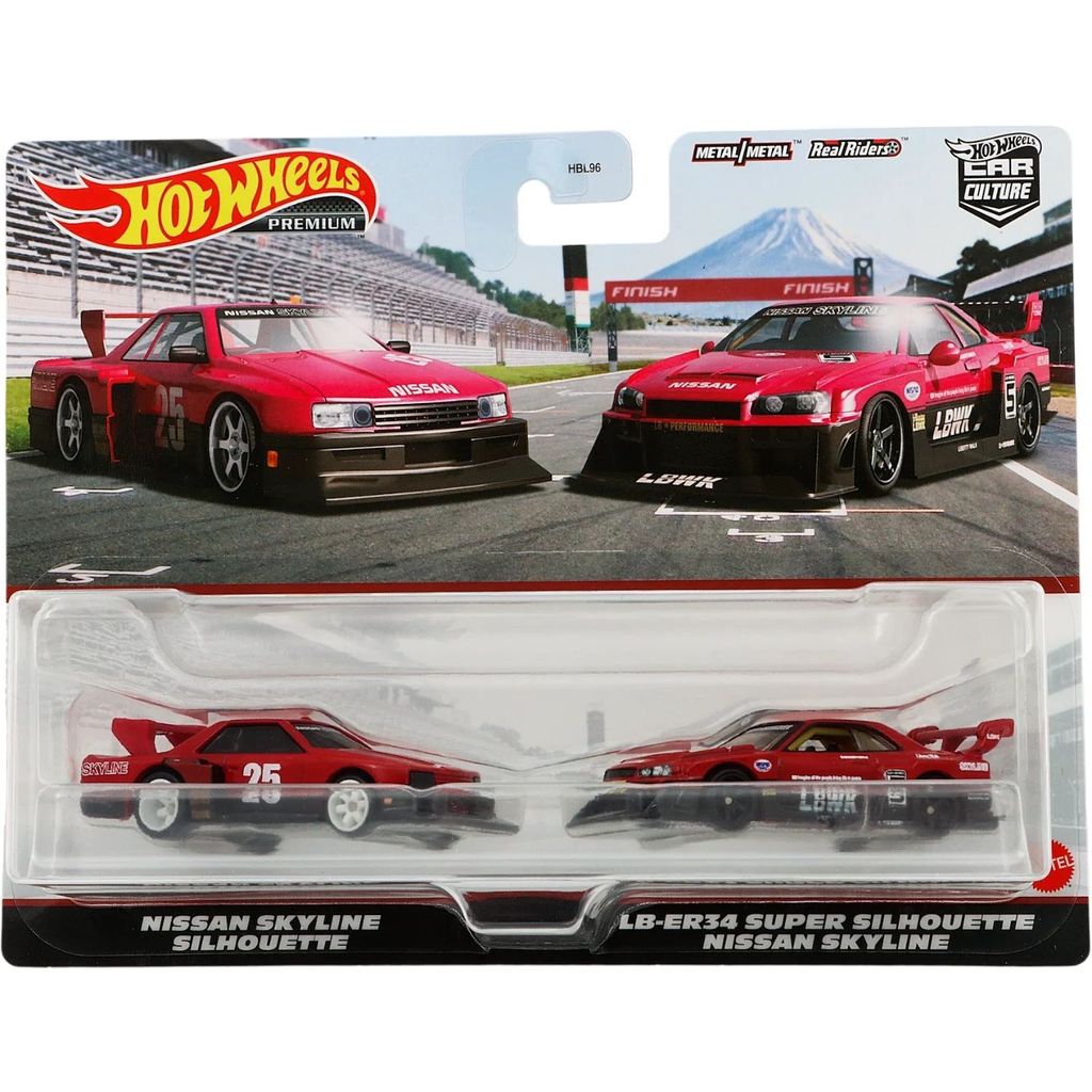 To biler i en 2-pak fra Hot Wheels. Bilerne er en Nissan Skyline Silhouette og en LB-ER34 Super Silhouette Nissan Skyline. To-pakken er en del af Hot Wheels Car Culture 2-Packs-serien, hvor denne pakke er en del af Mix 1 (G) fra 2023.