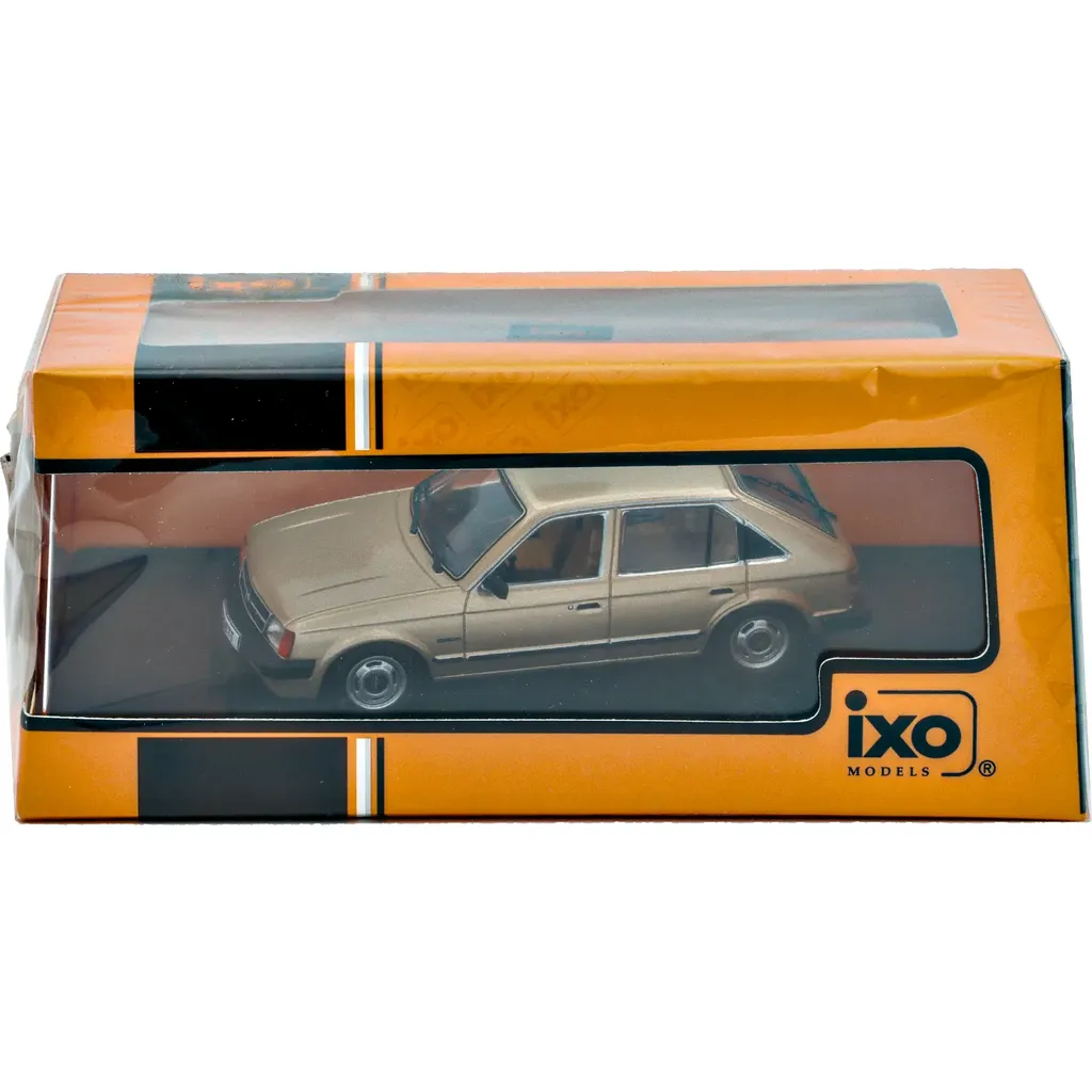 Beige (metallic, i den gyldne retning) Opel Kadett D fra 1981 som modelbil produceret af Ixo Models i skala 1:43 (9,5 cm).