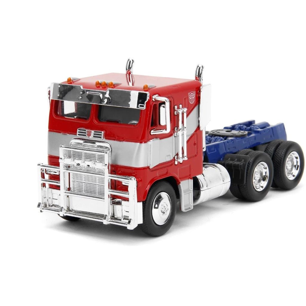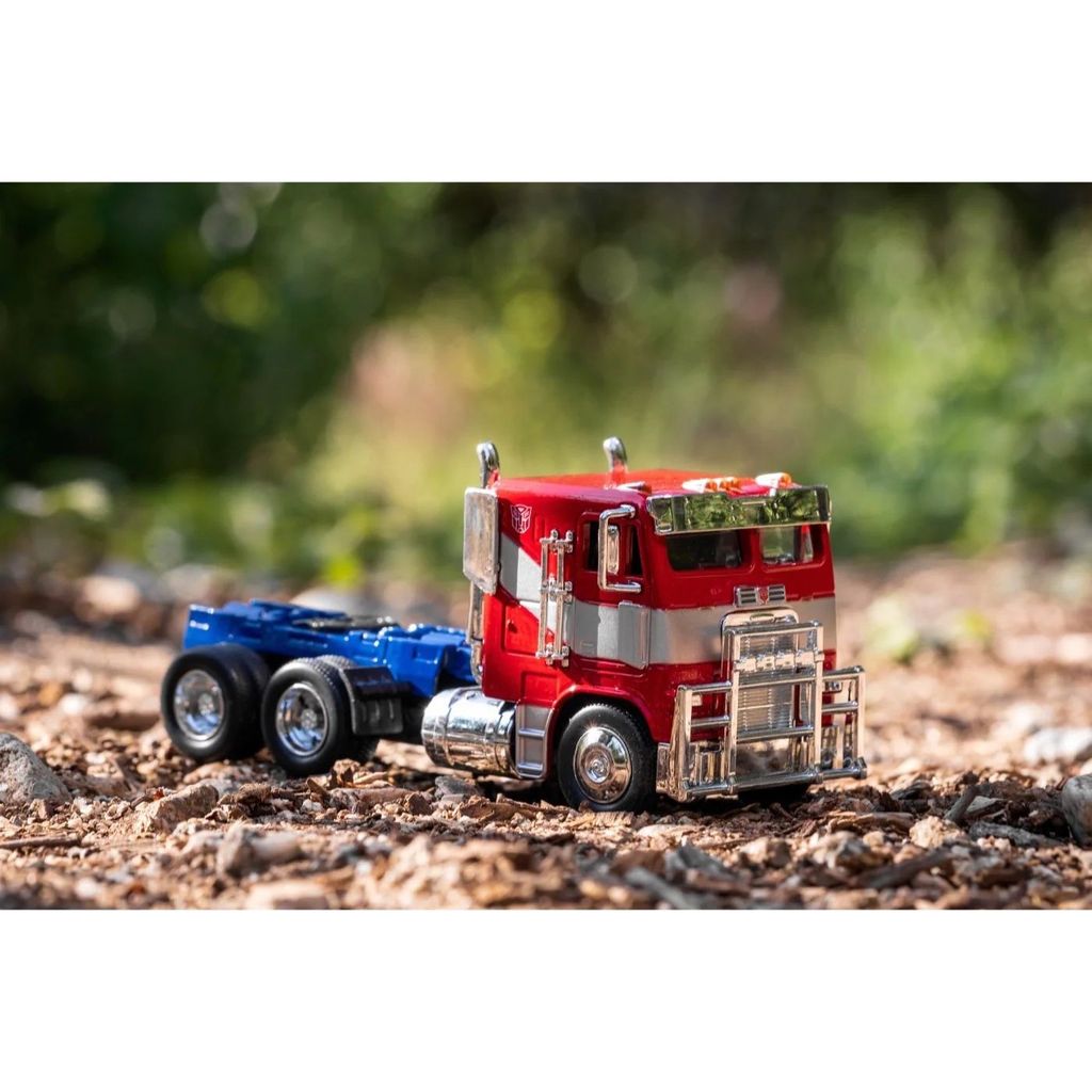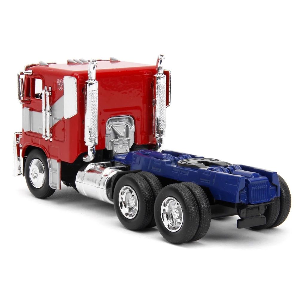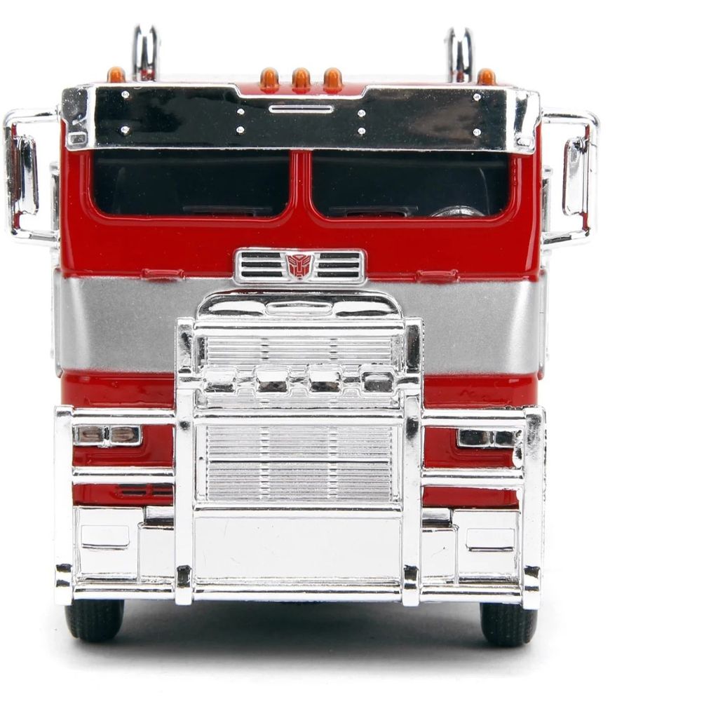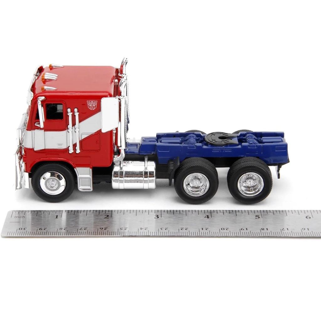 Optimus Prime fra Transformers og den syvende film Rise of the Beasts (2023) fra Jada Toys. Trækkøretøjet / Optimus Prime er en Western Star 5700XE. Længden på trucken / trækkøretøjet (Optimus Prime) er 14 cm.