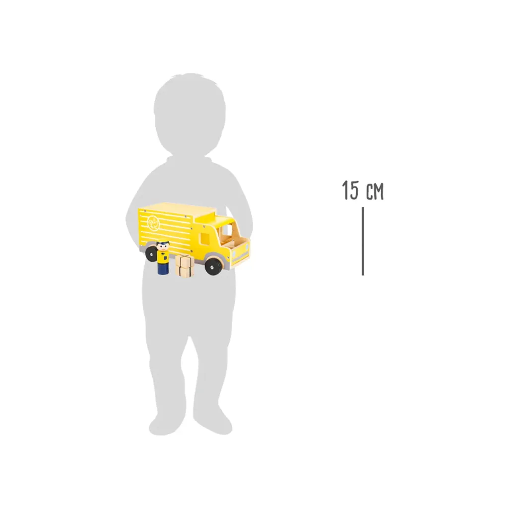 Den gule varevogn måler 30 x 15 x 14 cm.