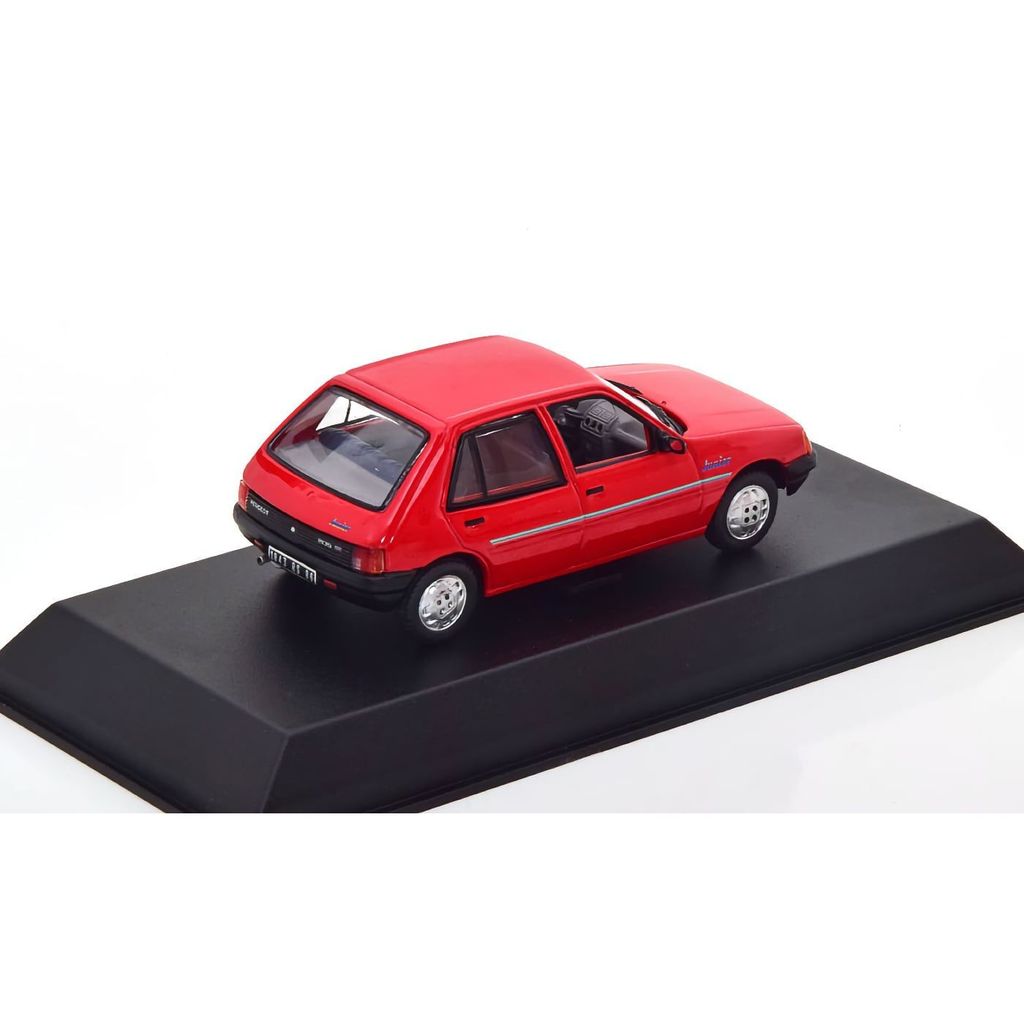 Model af en rød Peugeot 205 Junior, 1988, fra franske Norev i skala 1:43.