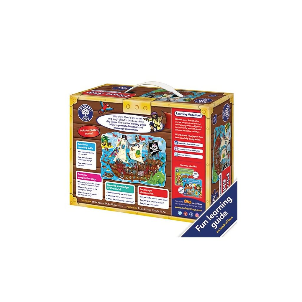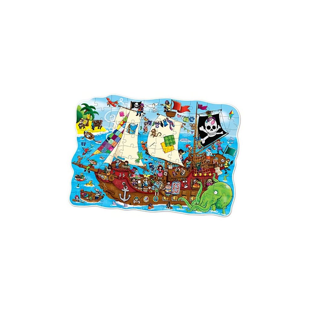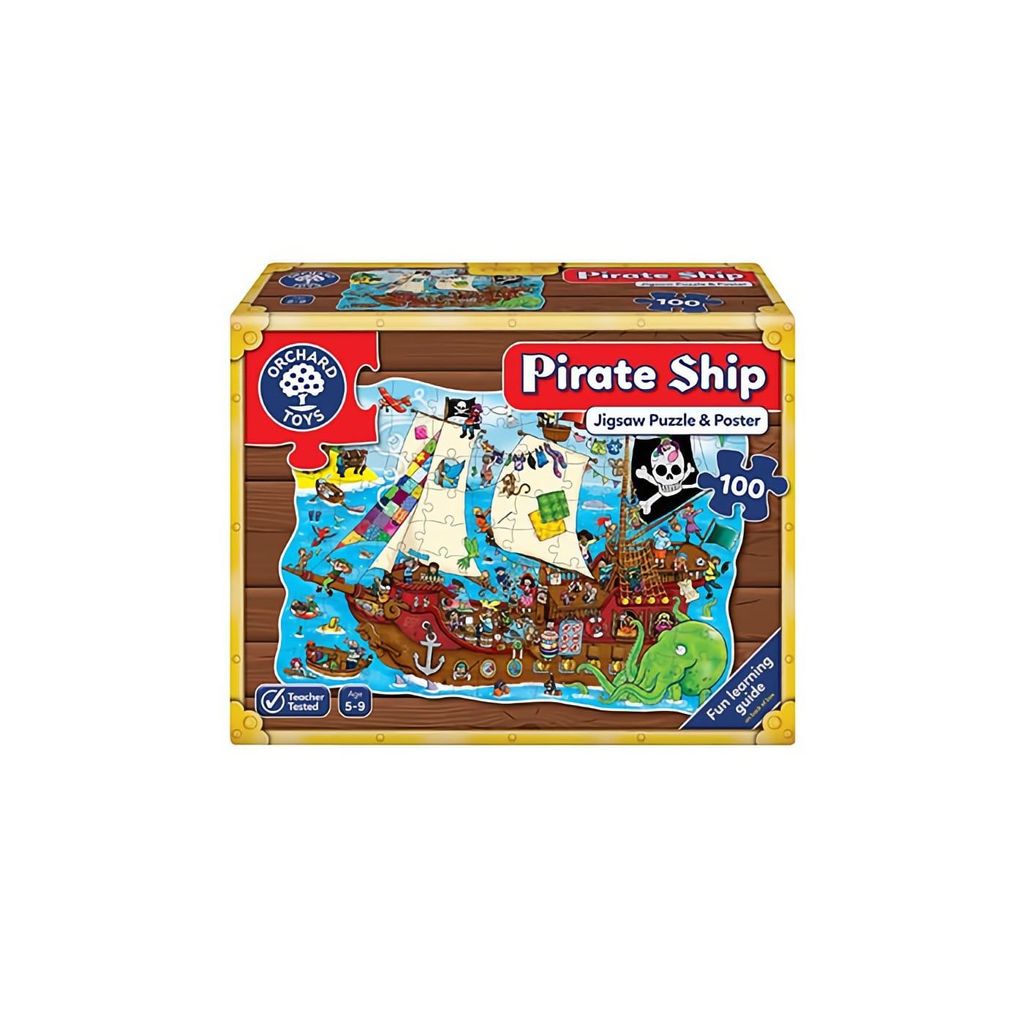 Et puslespil fra English Orchard Toys bestående af 100 brikker, der forestiller et piratskib. Pakken indeholder også en plakat med samme motiv som puslespillet.