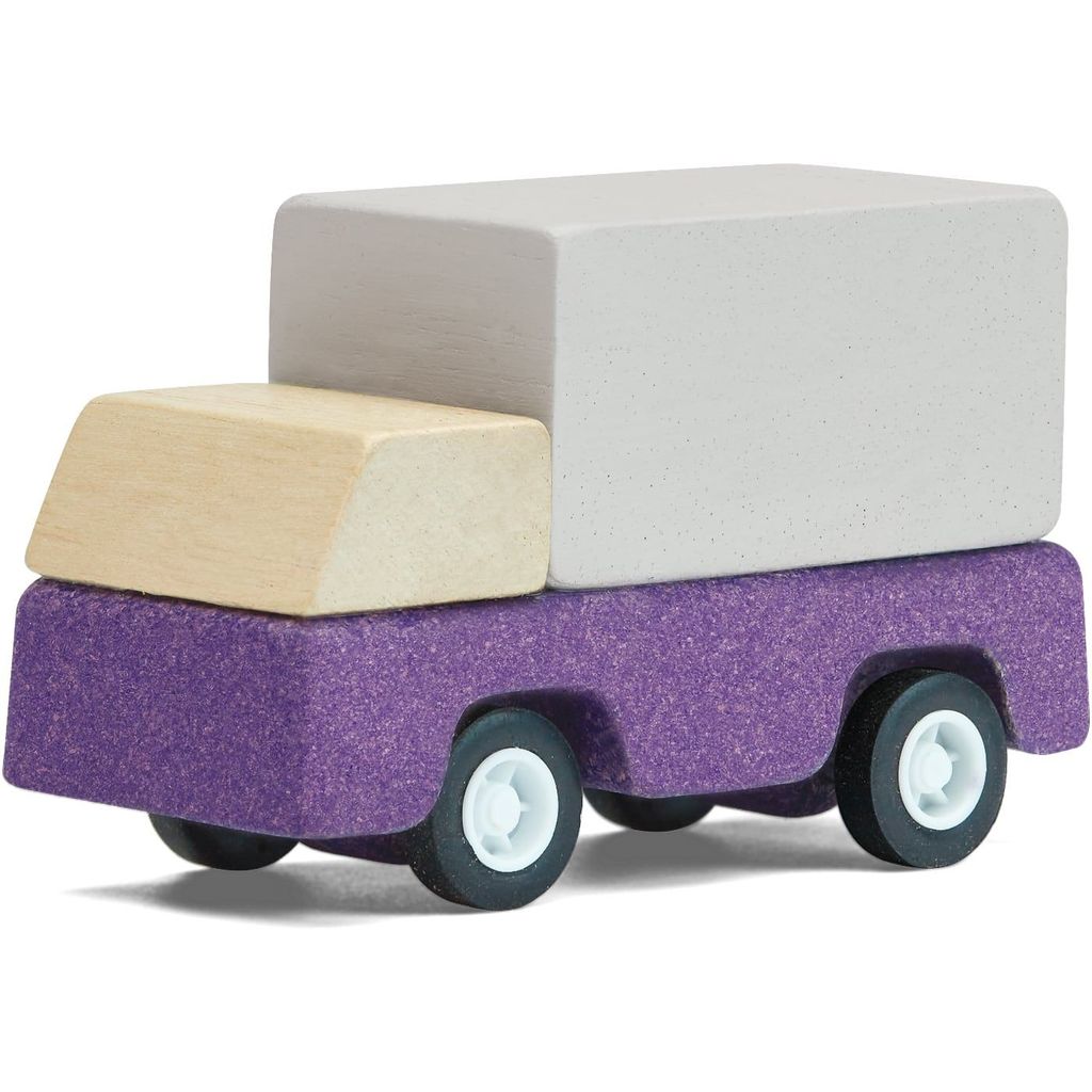 PlanToys' lilla lastbil er lavet af træ og PlanToys' eget materiale PlanWood, som er en blanding af savsmuld, giftfri lim og organisk lilla maling. Den stilfulde lastbil er 7,7 cm lang og har gummidæk, som gør, at den ruller godt og står fast på de fleste gulve. Legetøjslastbilen er af høj kvalitet og er en meget flot lastbil, der er klar til at levere varer i legetøjet.