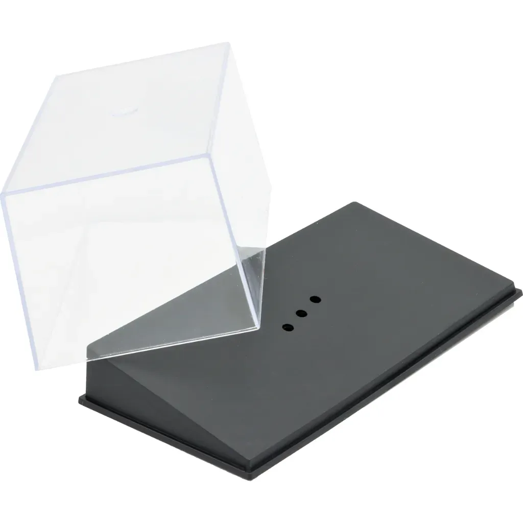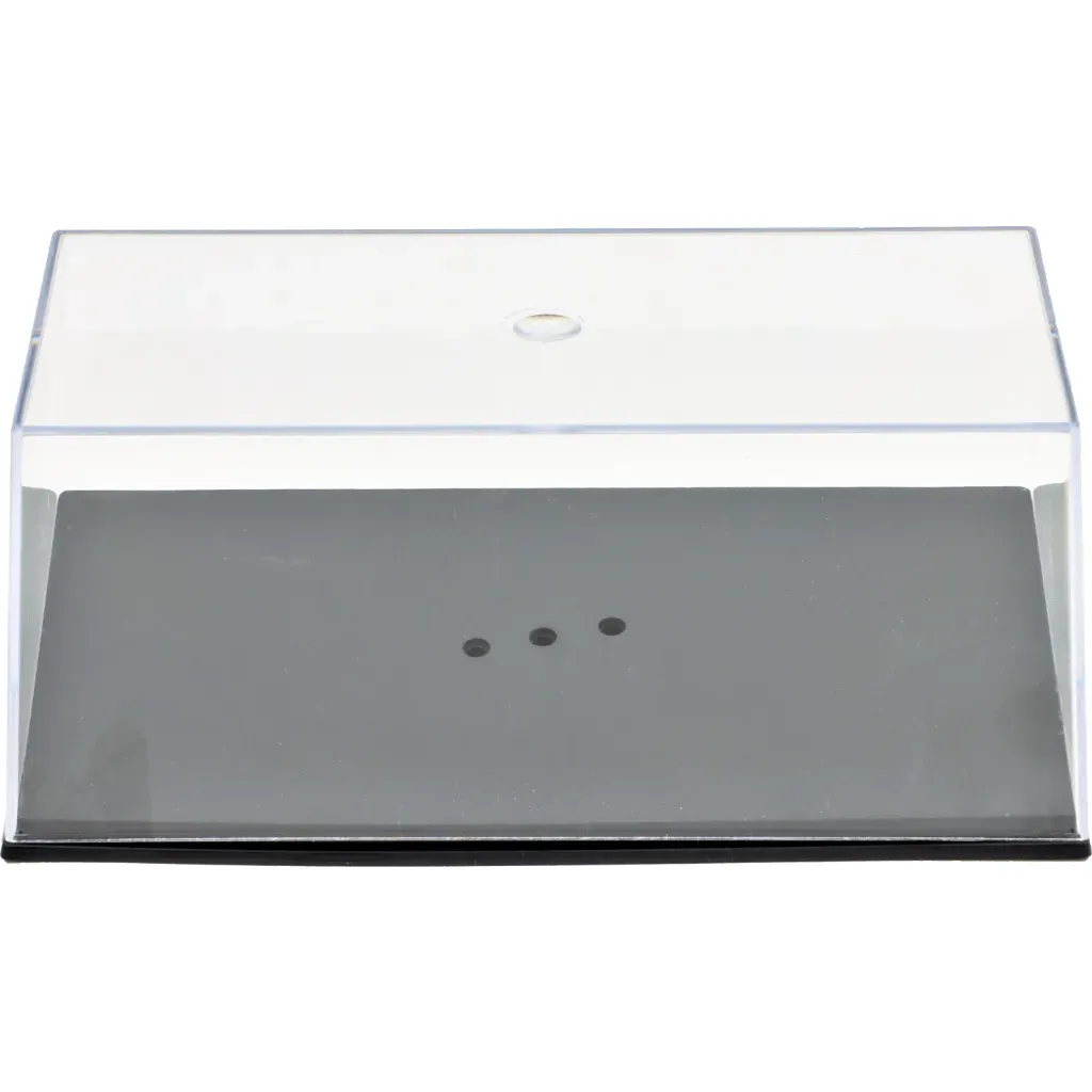 Plastkasse (Show Case) med skrånende bundplade til biler i skala 1:43.