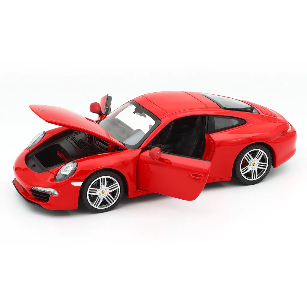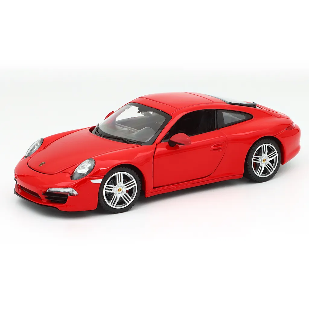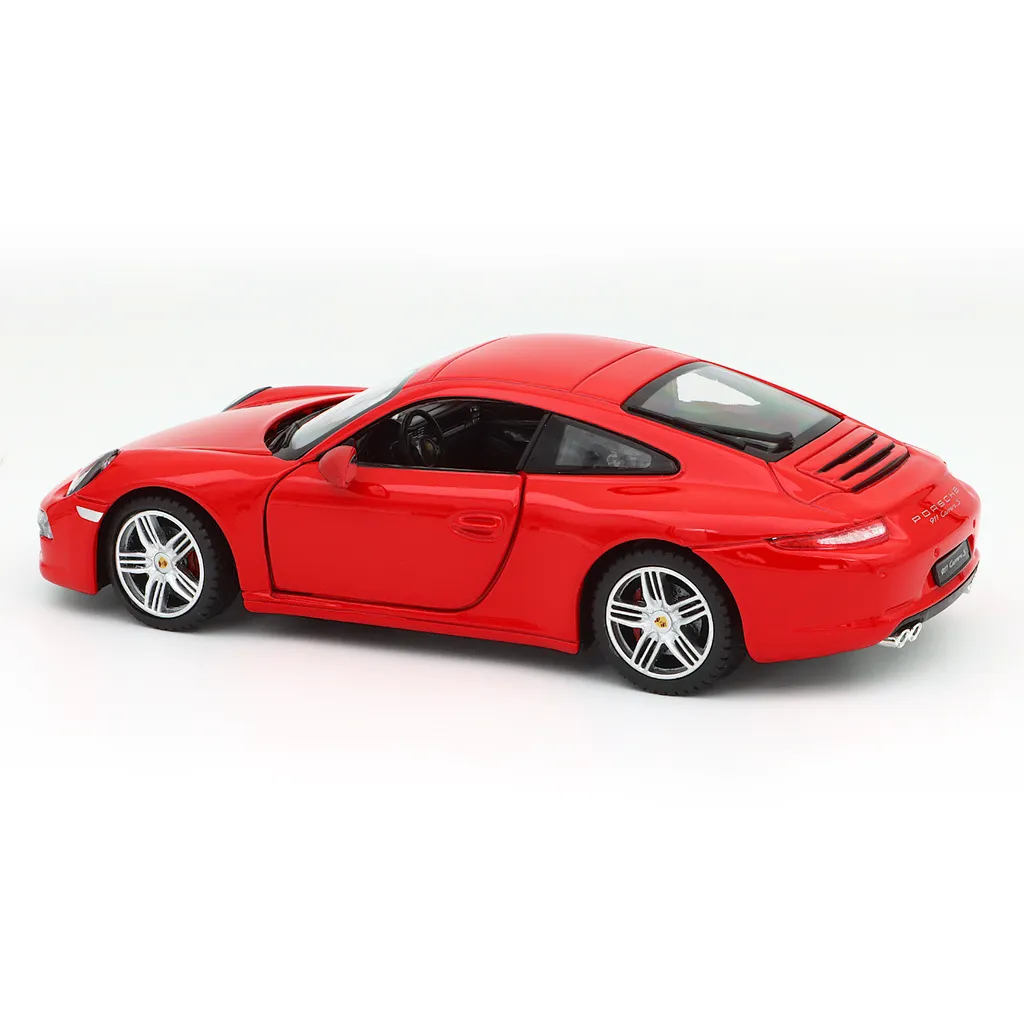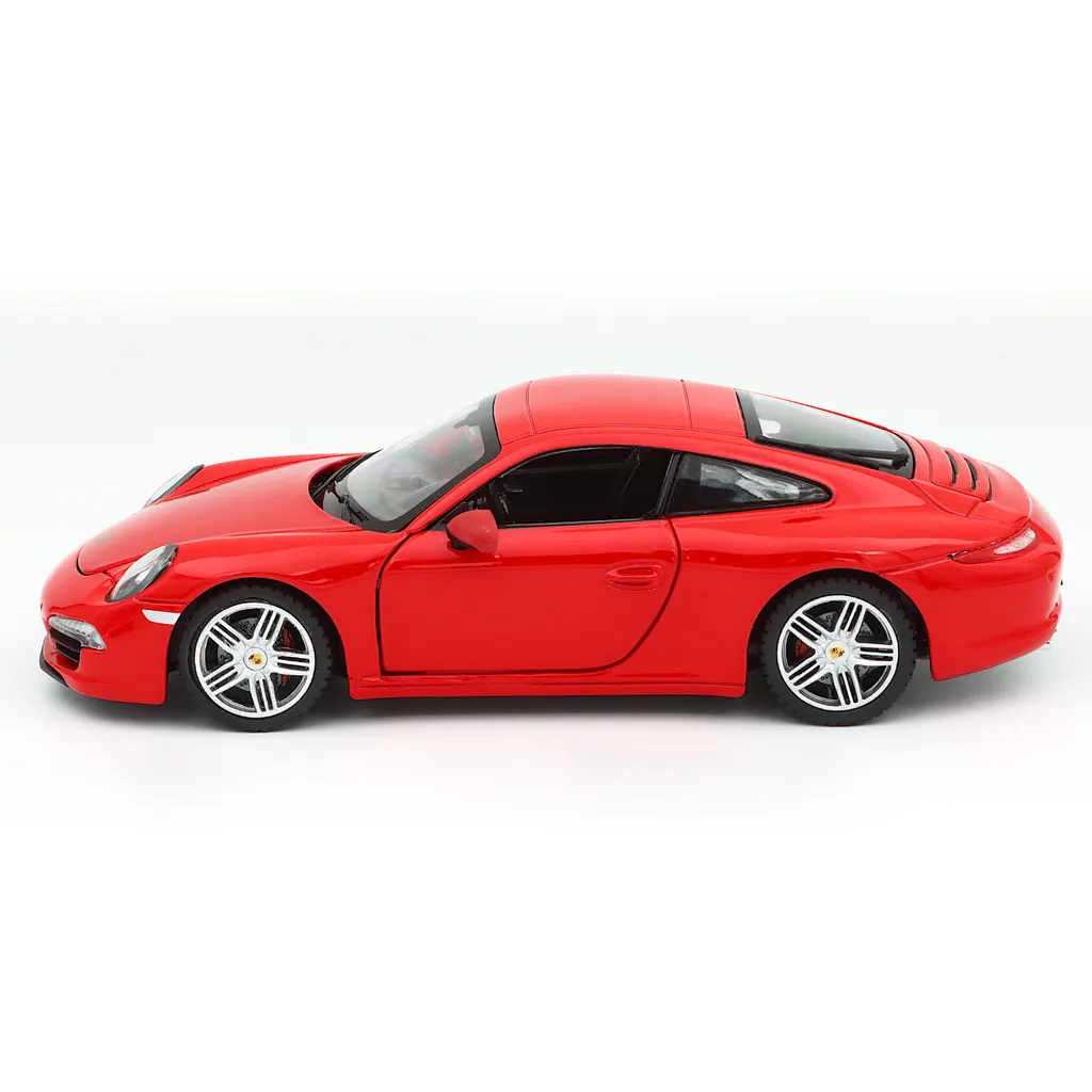 Rød Porsche 911 Carrera S i sort som model fra Rastar. Skalaen er 1:24, hvilket giver os en Carrera S, der måler 18 cm.