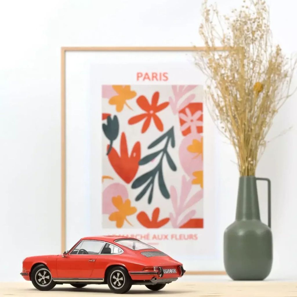 Orange Porsche 911 E, modelår 1969, fra franske Norev i skala 1:18 (24 cm).