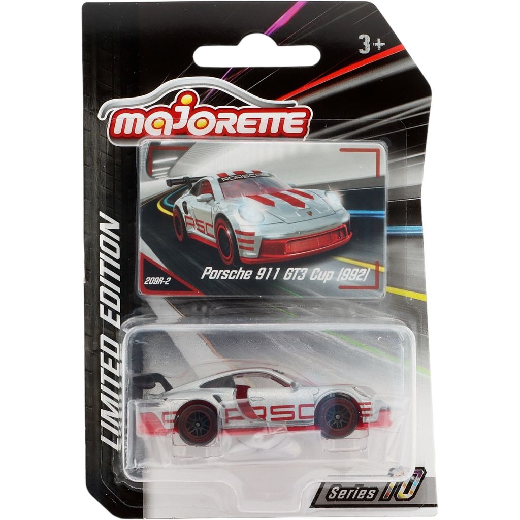 Grå (sølvmetallic) Porsche 911 GT3 Cup (992) legetøjsbil fra Majorette og Limited Edition Series 10-serien.