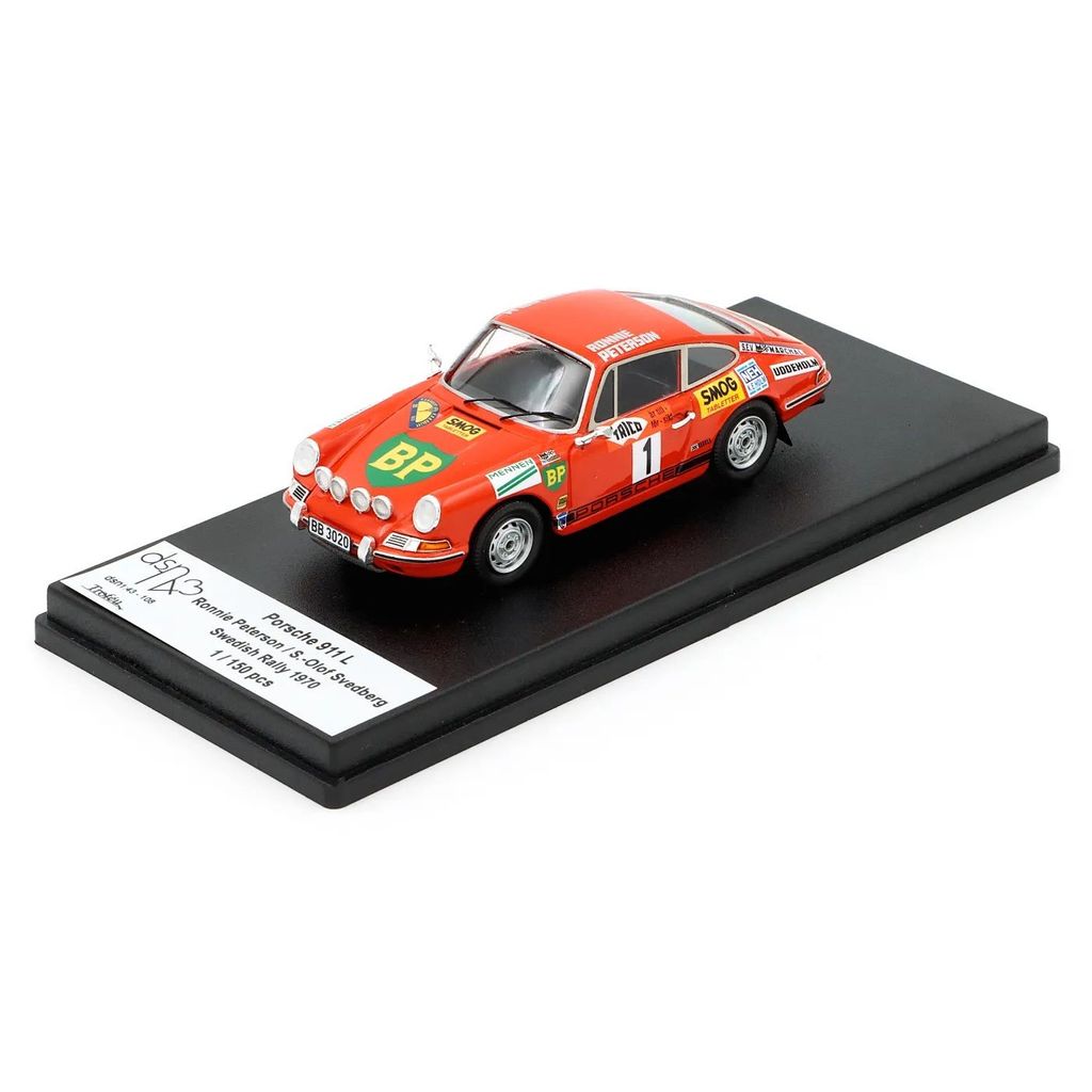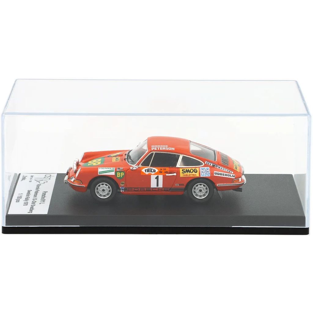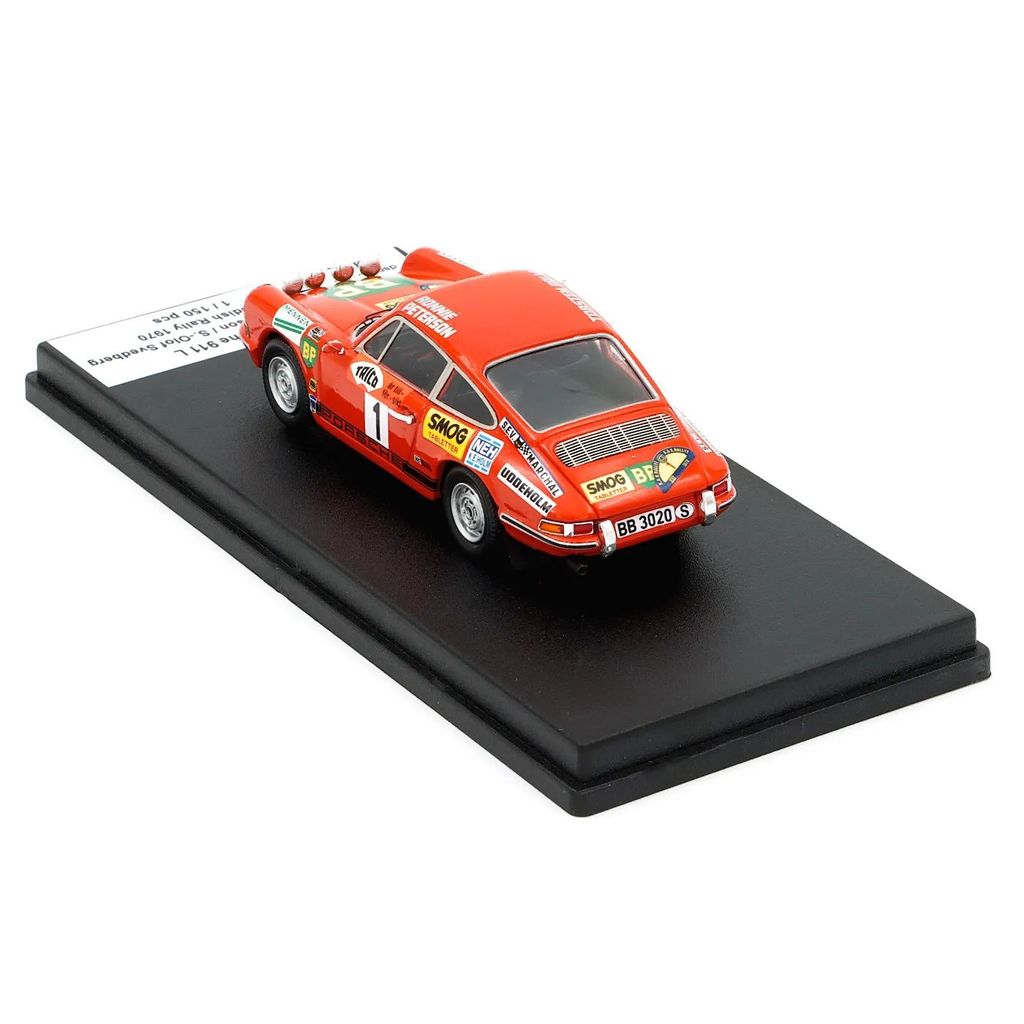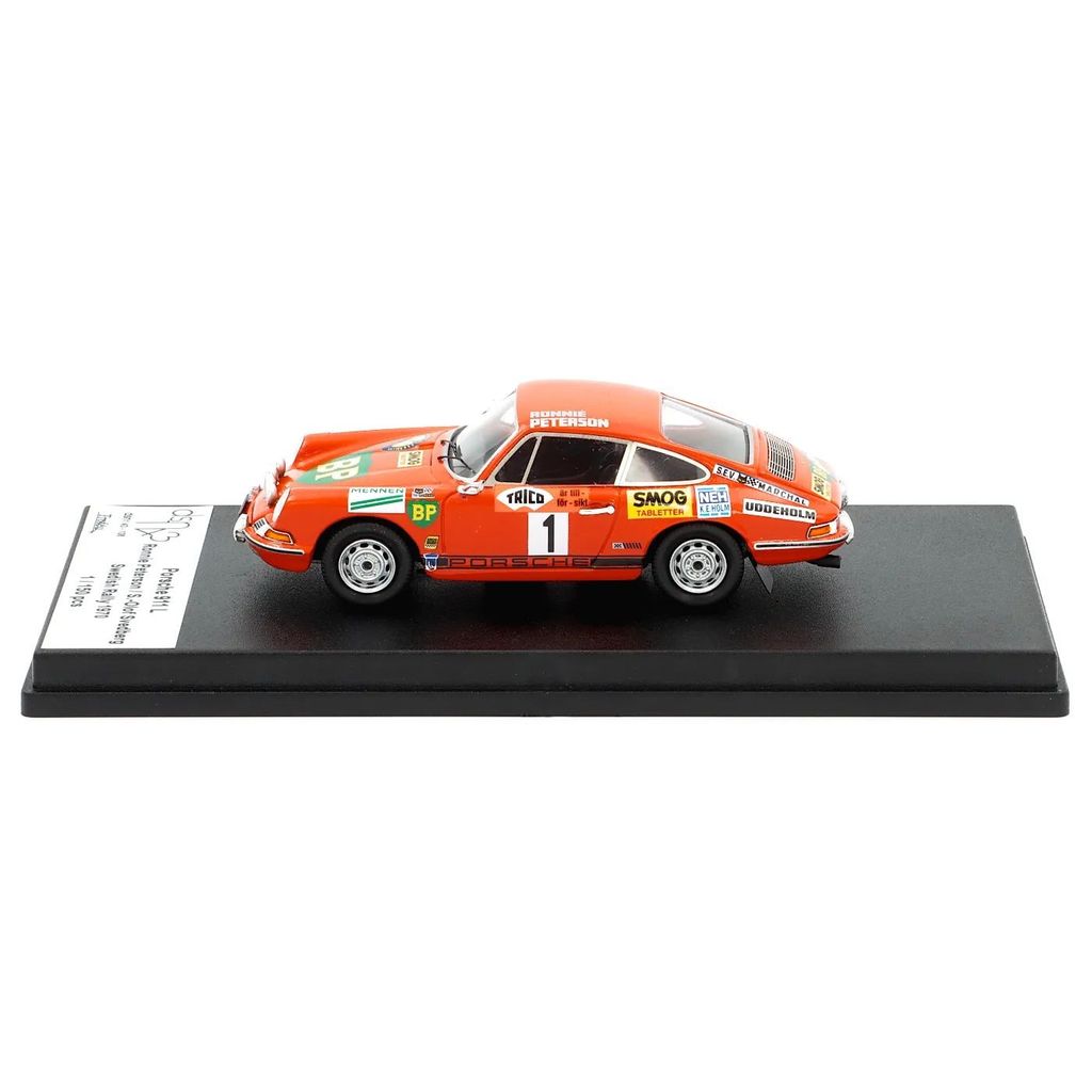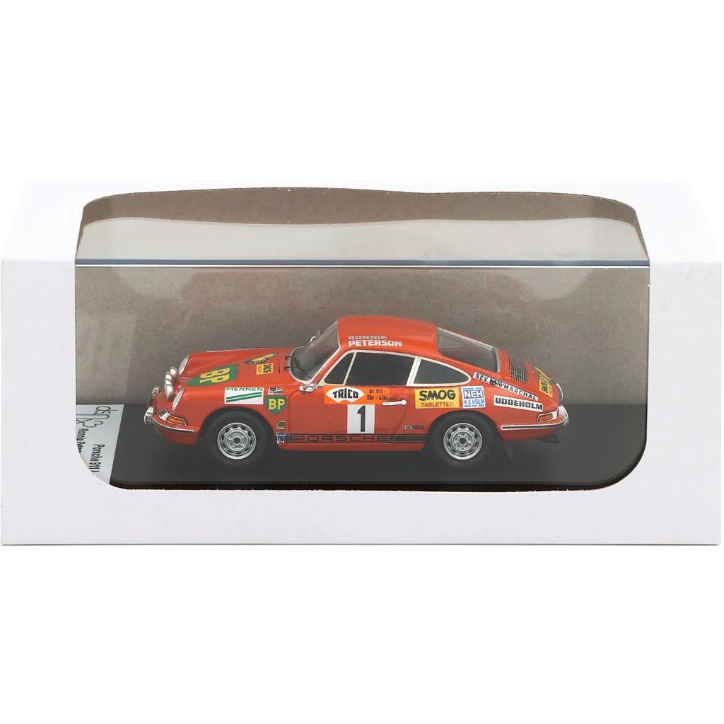 Orange Porsche 911 L kørt af Peterson/Svedberg under det svenske rally 1970 i skala 1:43 fra Trofeu.