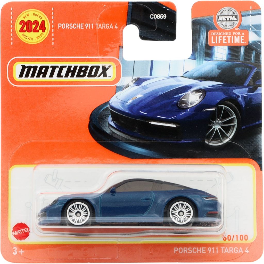 Blå Porsche 911 Targa 4, hvor denne bil er bil nummer 60/100 i Matchbox-serien.