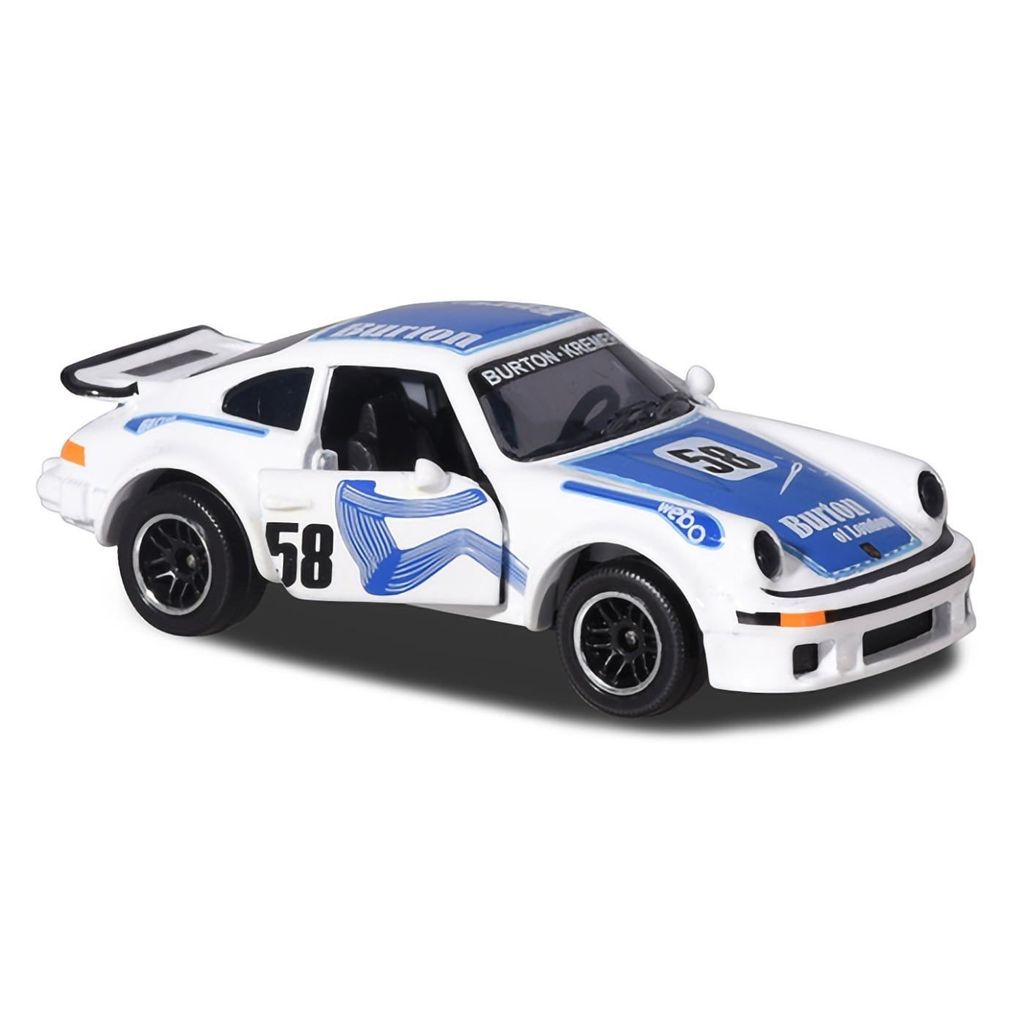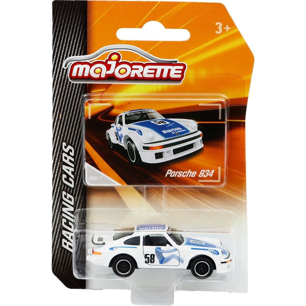 Hvid Porsche 934 i skala 1:57 fra Majorette og Racing Cars-serien. Bilen har døre, der kan åbnes.