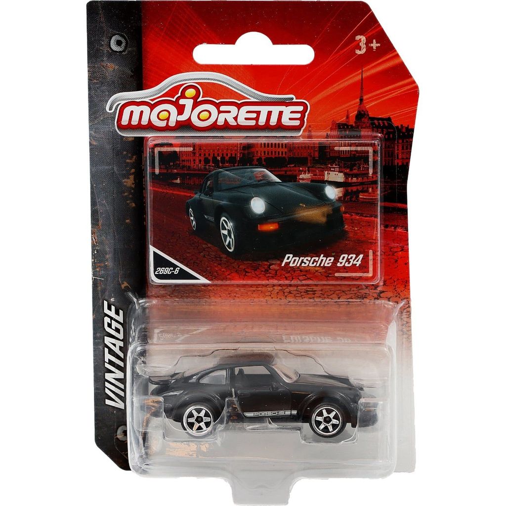 Sort Porsche 934 fra Majorette og Vintage-serien. Skalaen er 1:57, hvilket giver Porschen en længde på ca. 7,5 cm.
