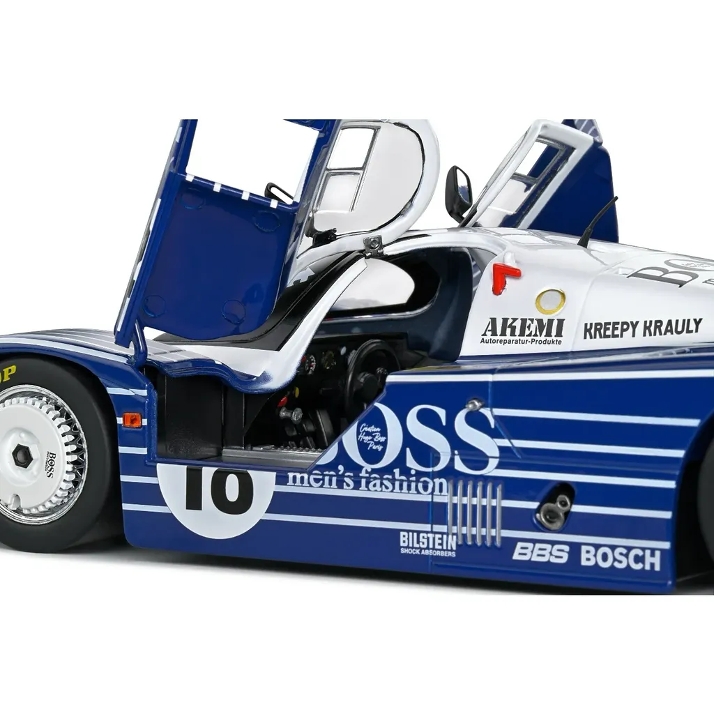 Model af Porsche 956LH, der blev nummer syv på Le Mans i 1983. Modelbilen er lavet af det franske firma Solido i skala 1:18 (26,5 cm).