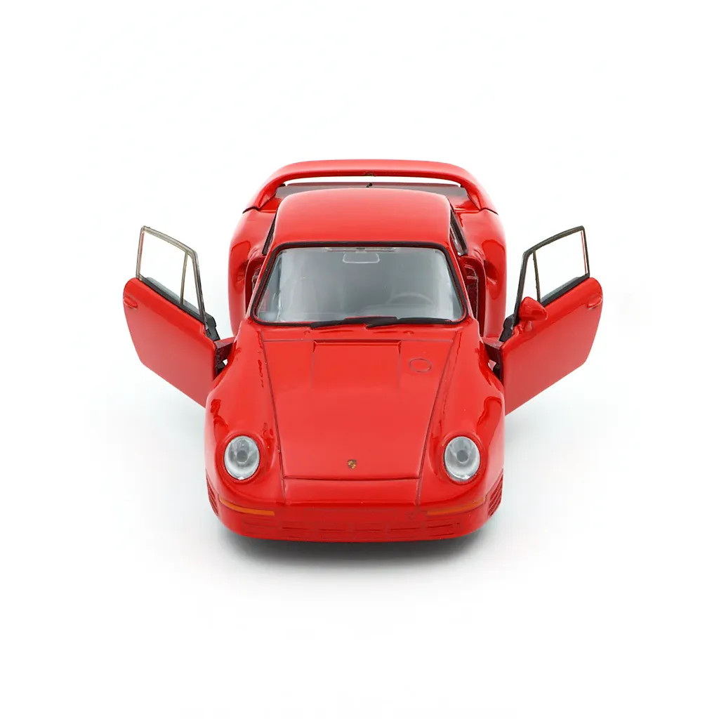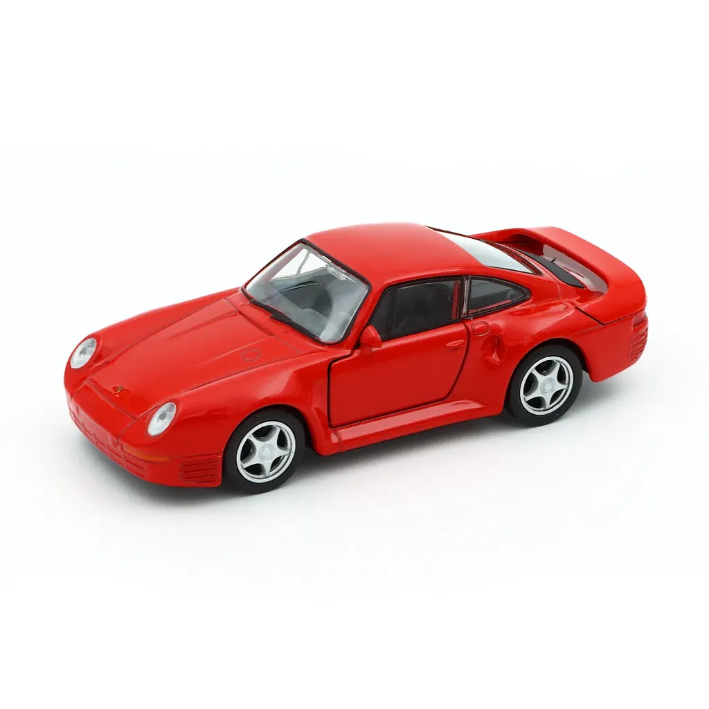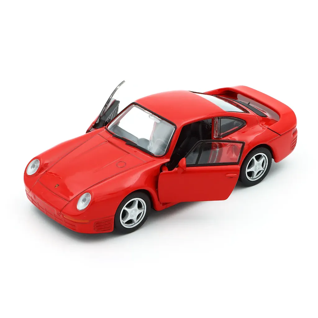 Porsche 959 i rød fra Welly. Dørene kan åbnes. Bilen er 11,5 cm (målestok ca. 1:34-1:39).