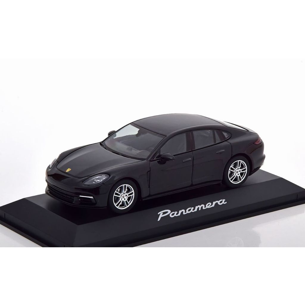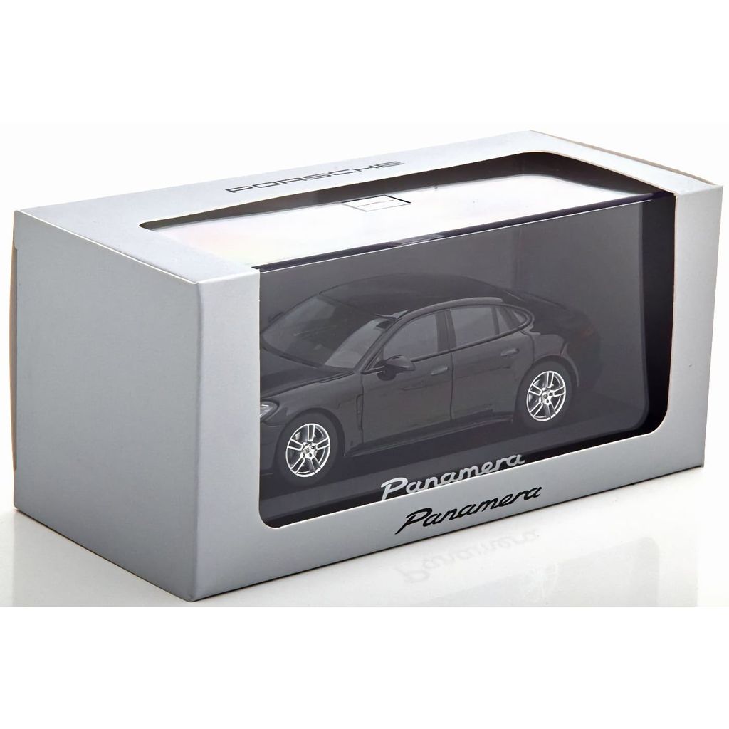 Sort Porsche Panamera (2017) modelbil fra Herpa i skala 1:43.