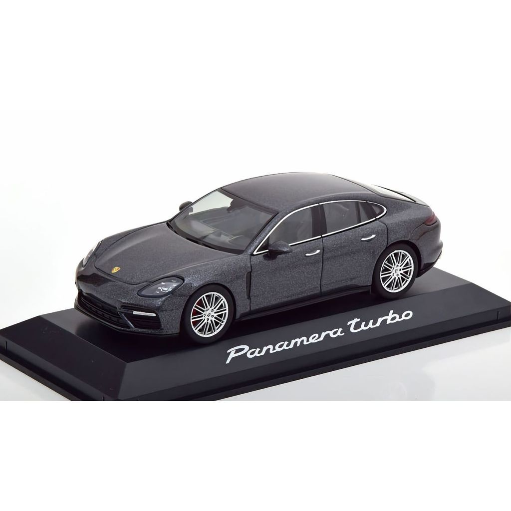 Metallisk grå Porsche Panamera Turbo Facelift (2016) som modelbil fra Herpa i skala 1:43.