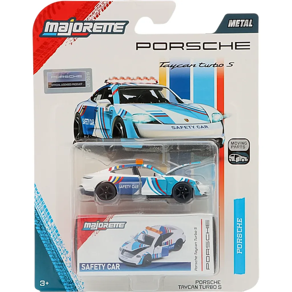 Porsche Taycan Turbo S som "Safety Car" fra Majorette. Længde 7,5 cm.