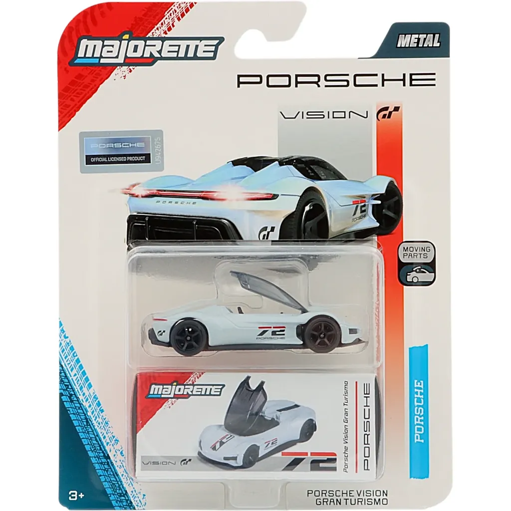 Hvid Porsche Vision Gran Turismo fra Majorette. Længde 7,1 cm.