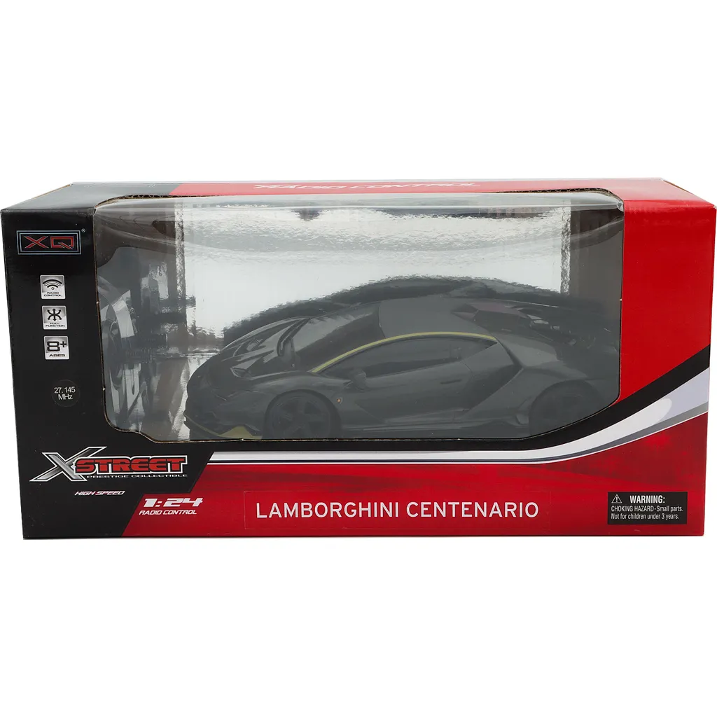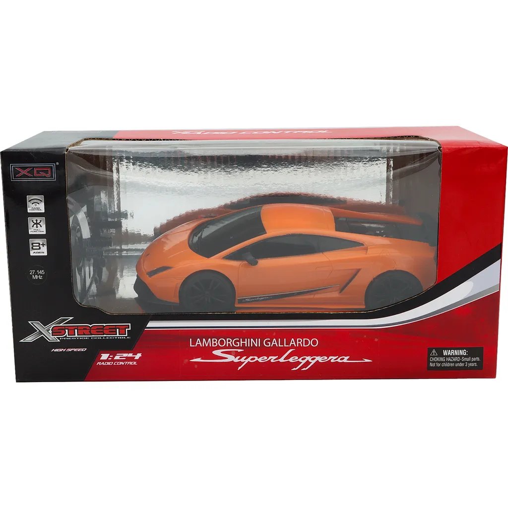 En radiostyret sportsvogn med gummidæk i skala 1:24.
