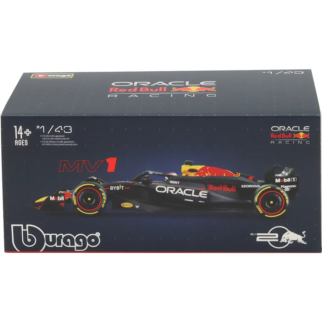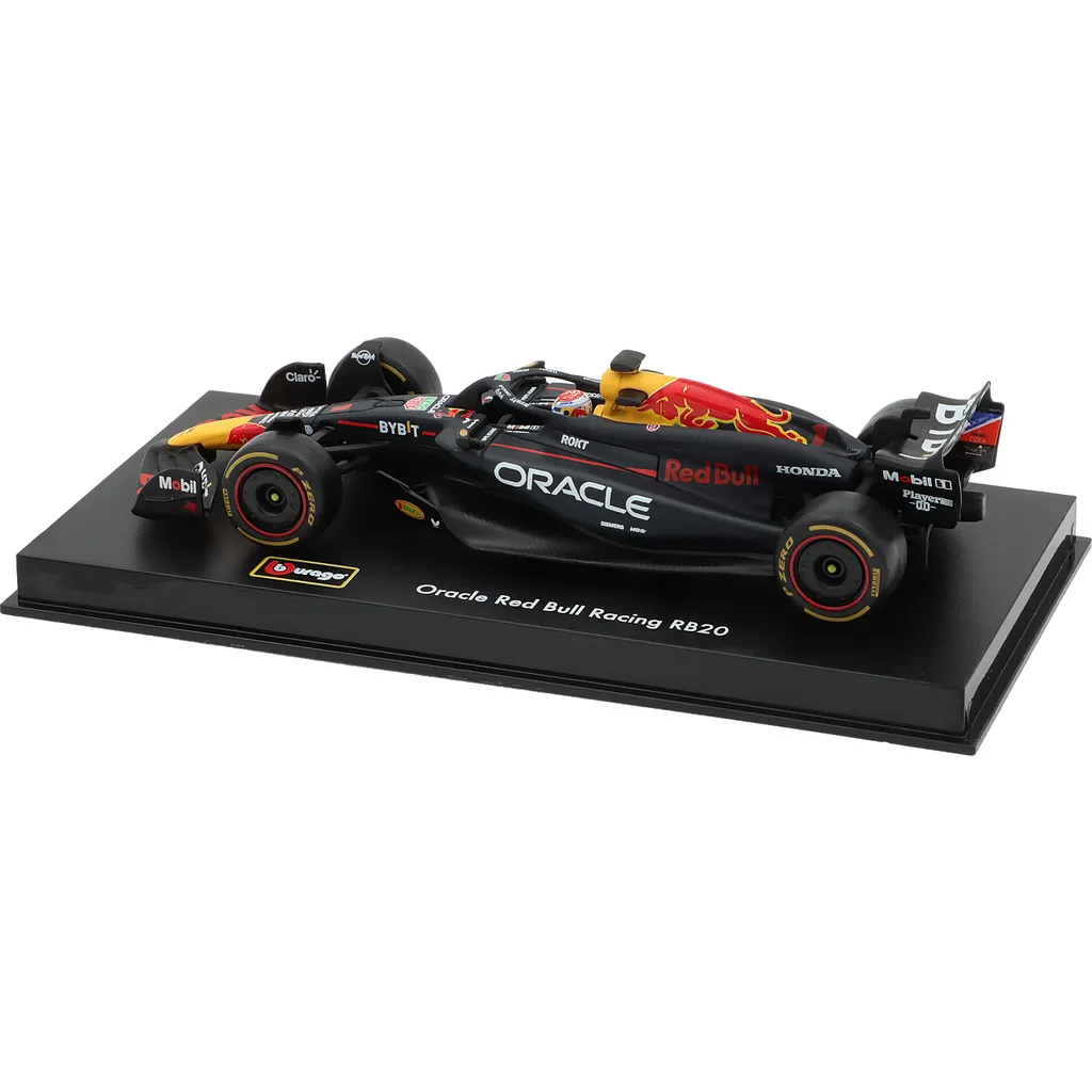 Red Bull RB20 med nummer 1 blev kørt af Max Verstappen i sæsonen 2024. Denne modelbil er lavet af Bburago i skala 1:43, hvilket betyder, at den er 13 cm lang. Bilen leveres i en akrylboks.