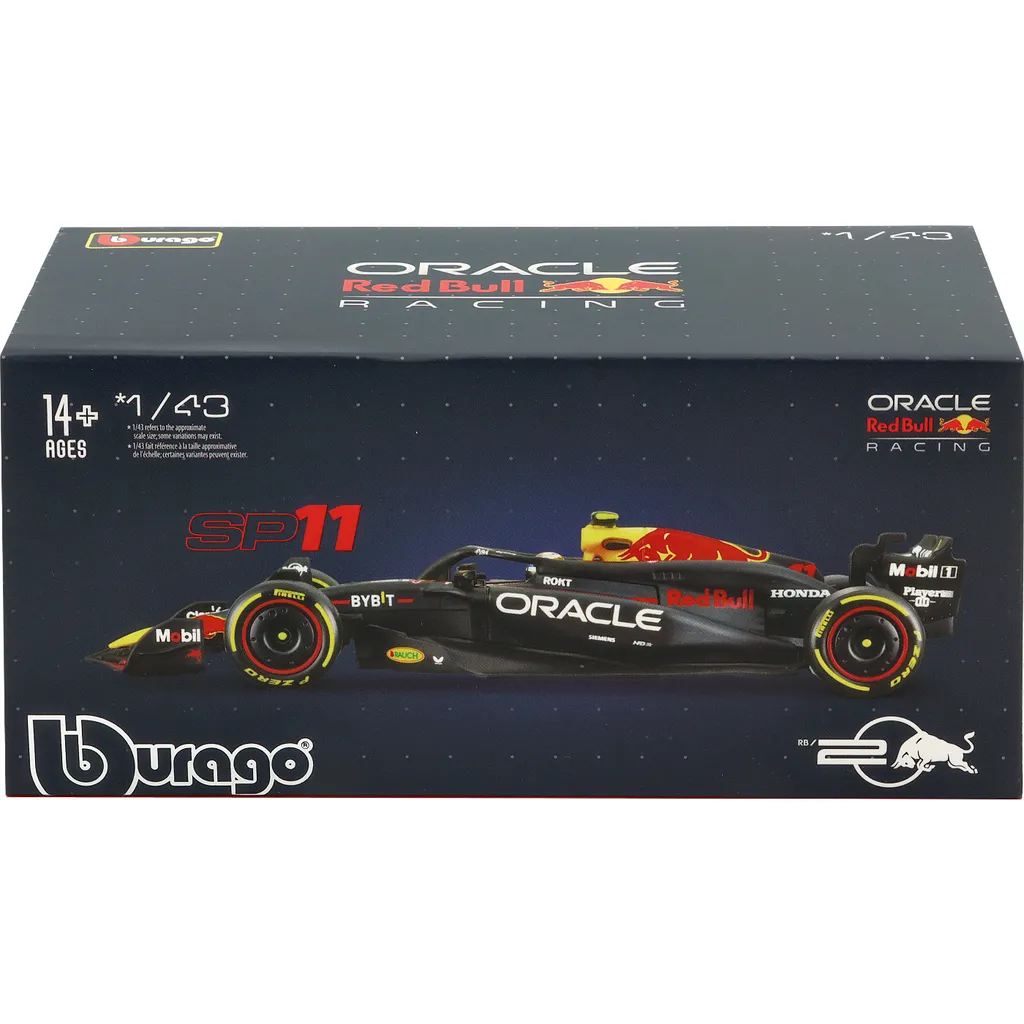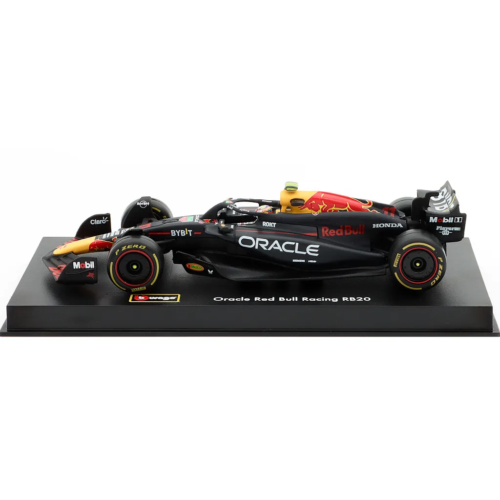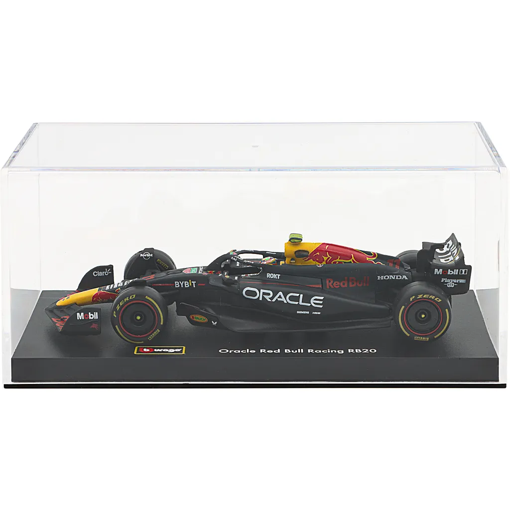 Red Bull RB20 med nummer 11 blev kørt af Sergio Perez i F1-sæsonen 2024. Denne modelbil er lavet af Bburago i skala 1:43, hvilket betyder, at den er 13 cm lang. Bilen leveres i en showcase.