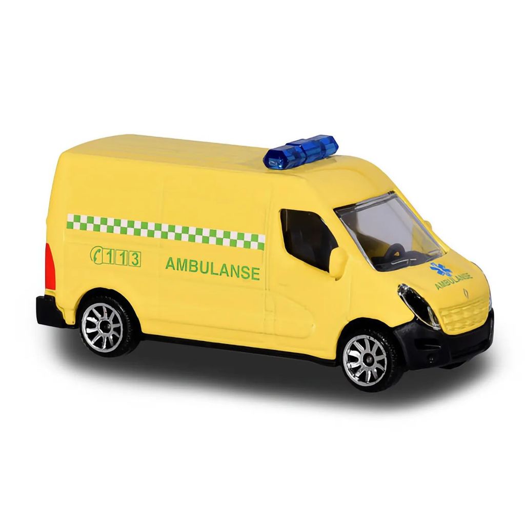 Renault Master som norsk ambulance (Ambulanse 113) fra Majorette. Skalaen er 1:66, hvilket giver os en legetøjsambulance på 7,6 cm.