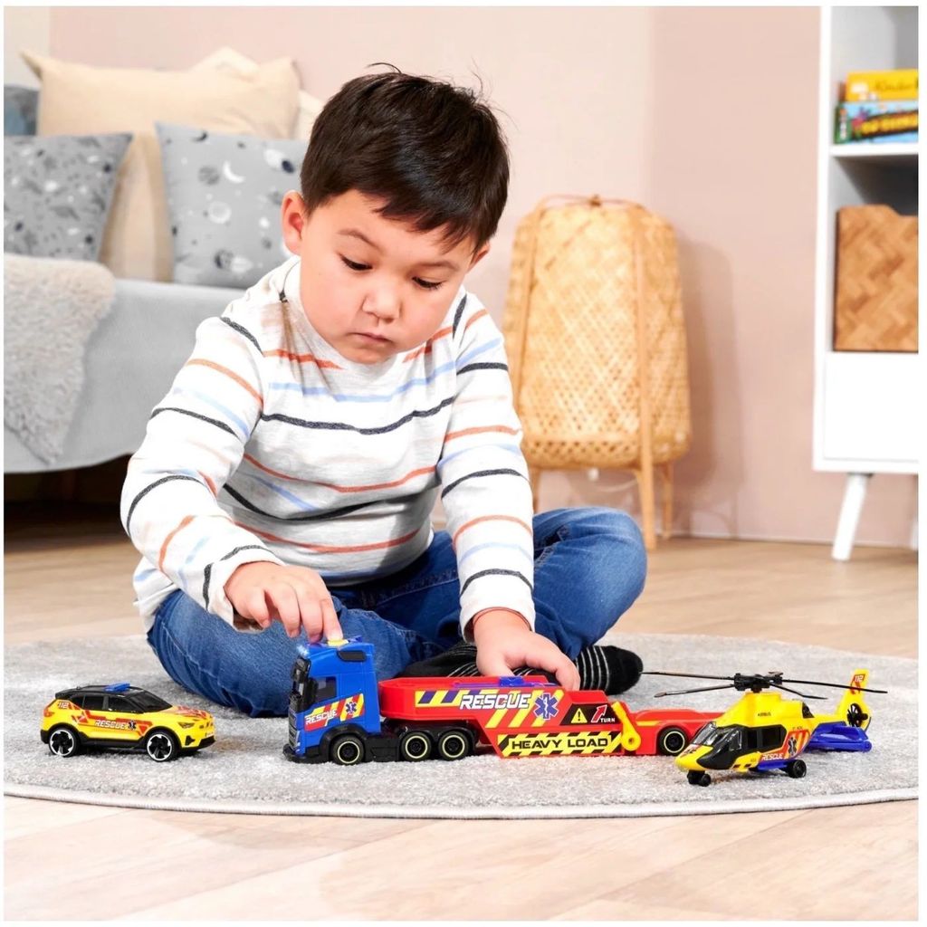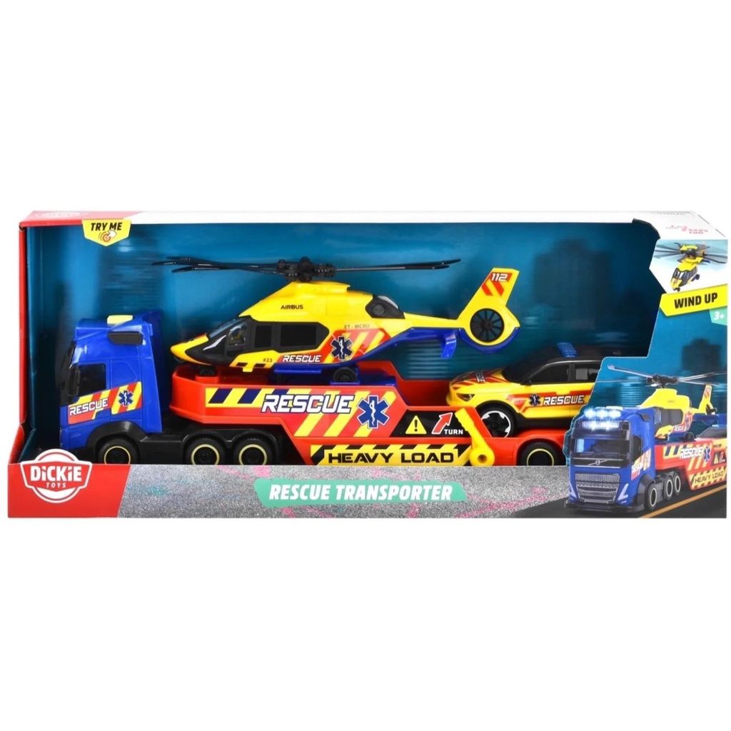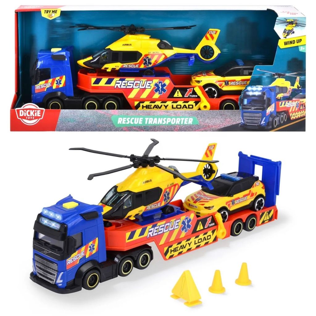 Volvo FH16 + Volvo XC40 + Airbus H160 fra Dickie Toys.