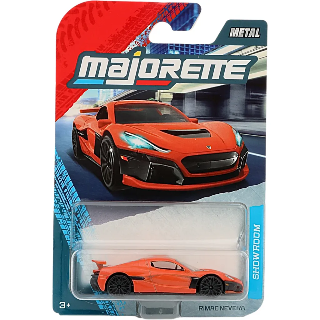 Rimac Nevera fra Majorette og Showroom Premium Cars-serien. Bilen er 7 cm lang og lavet af metal med plastdetaljer.