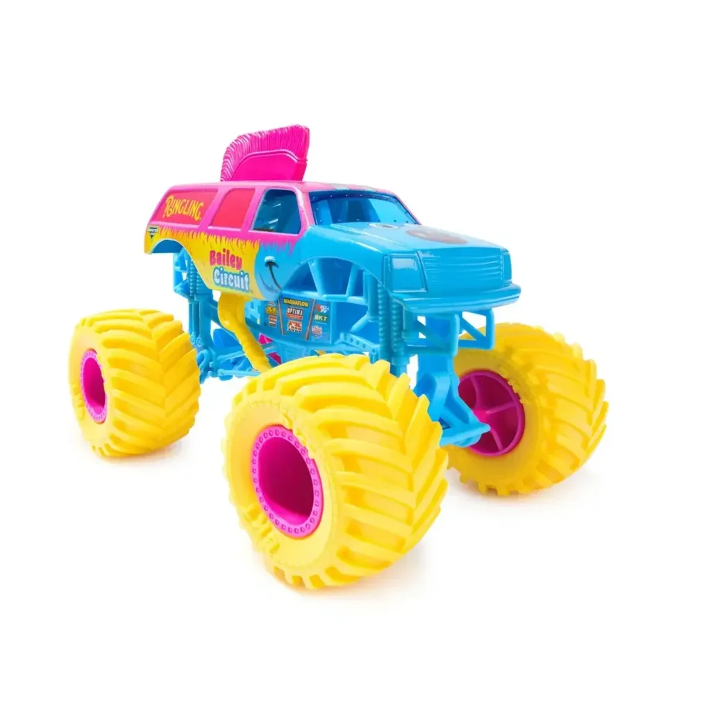 Monster Truck Ringling Bailey Circuit fra Monster Jam som model og legetøjstruck fra Spin Master. Trucken er i skala 1:24 (20 cm lang) og er derfor en skalamodel af den rigtige Ringling Bailey Circuit-truck.