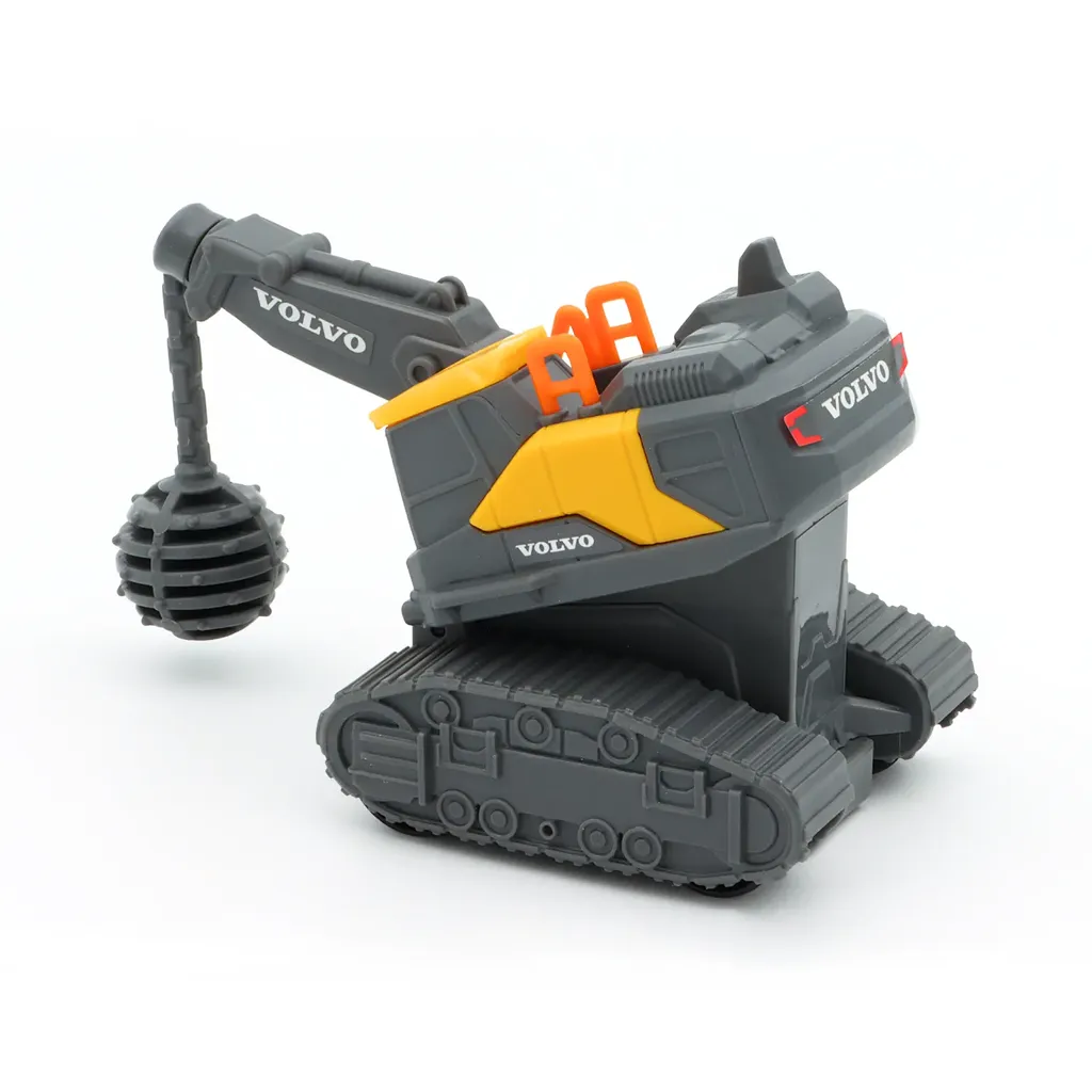 Når man skubber til gravemaskinen, drejer nedrivningskuglen til venstre. På grund af denne seje funktion, som øger legeværdien, er gravemaskinens krop skrånende og "snedækket", så man kan skubbe Volvo-gravemaskinen ned for at svinge med bolden i legetøjet.