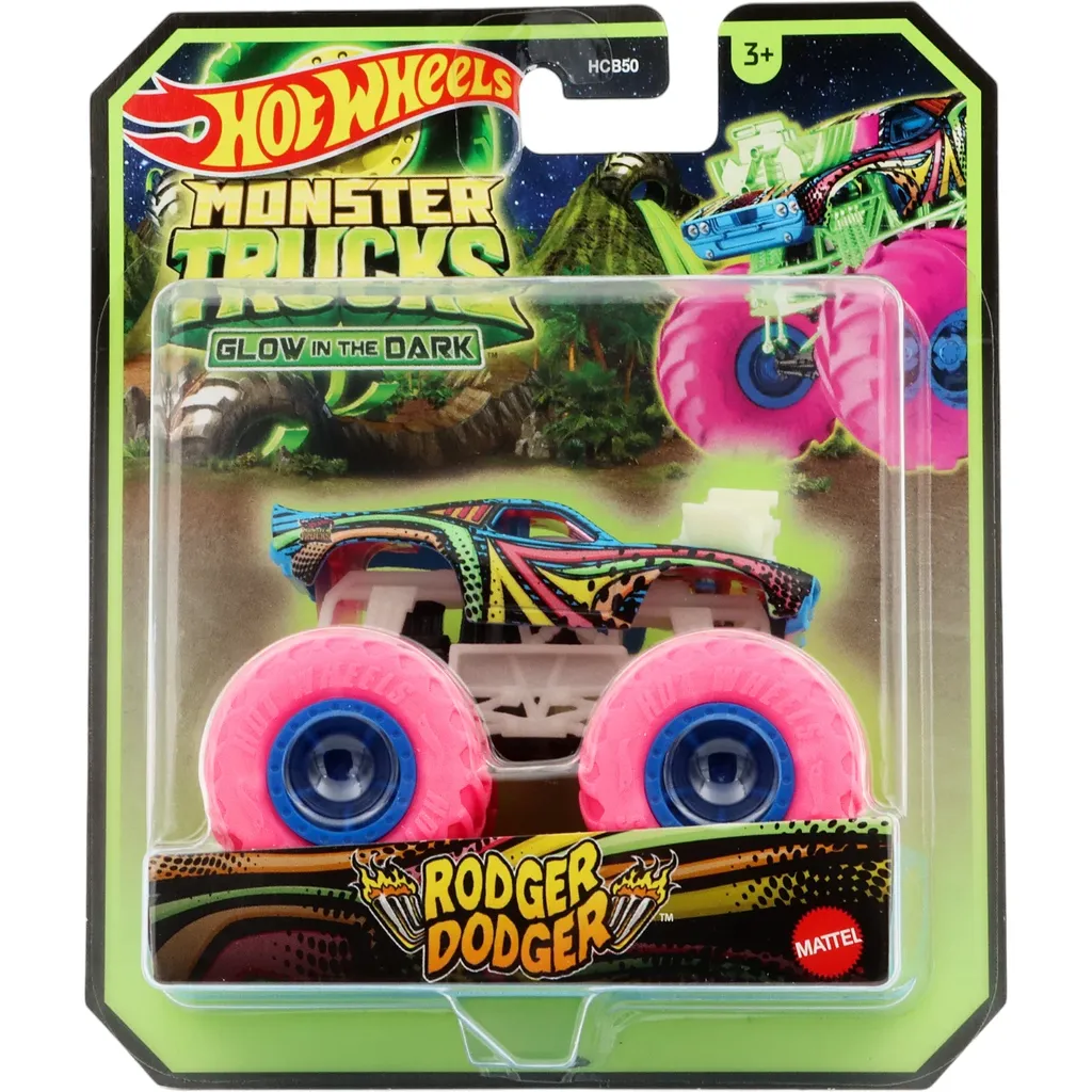 Rodger Dodger monstertruck fra Hot Wheels og deres Glow in the Dark monster truck-serie, hvilket betyder, at denne truck har dele, der er opladet med lys og derefter lyser i mørket.