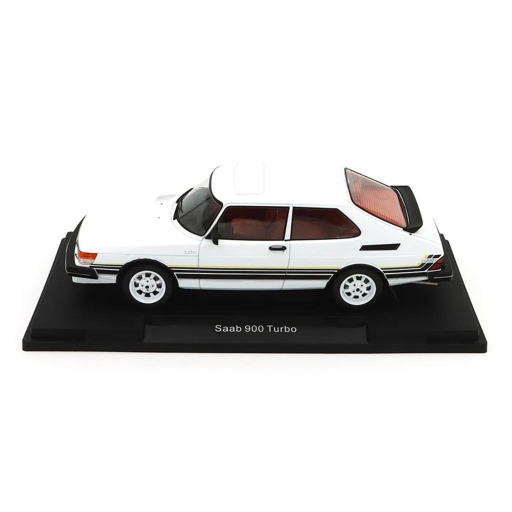 Lad os præsentere en smuk model af en klassisk svensk bil, nemlig en hvid Saab 900 Turbo fra 1981.