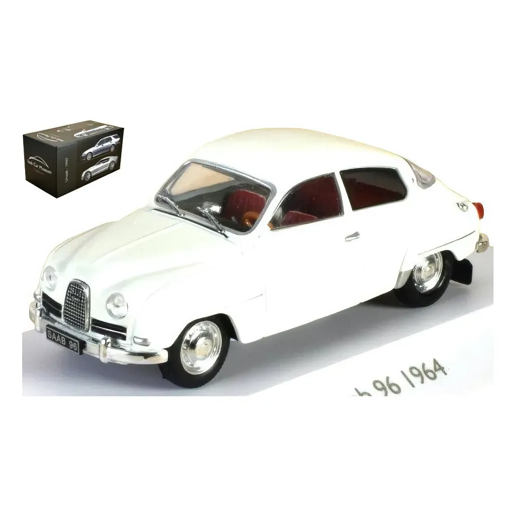 Hvid Saab 96, modelår 1964, fremstillet af Atlas Edition i skala 1:43 (ca. 9-10 cm lang). Modellen er en del af Atlas' Saab Car Museum-serie.