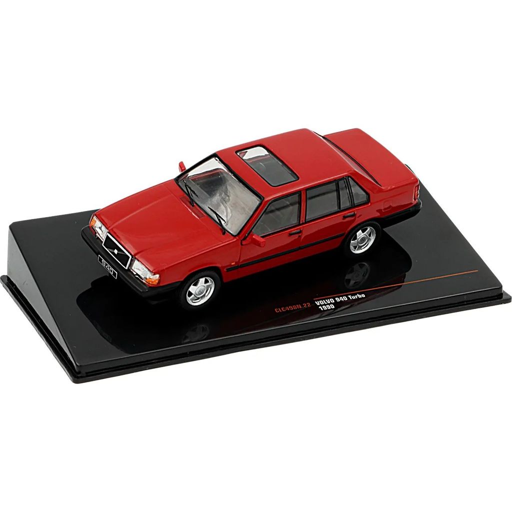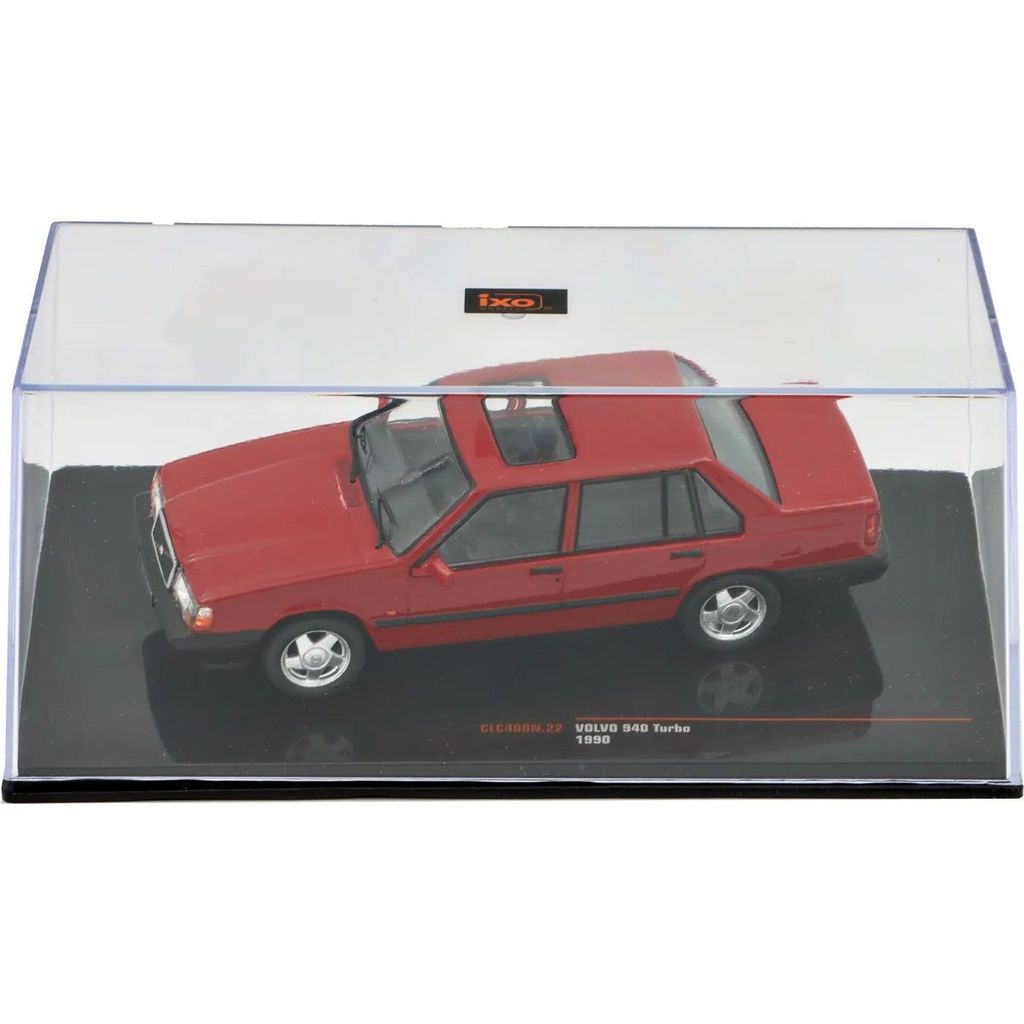 Volvoen leveres i en akrylboks monteret på en sort bundplade med modelnummeret og bilens/modellens navn angivet, "CLC498N.22 - Volvo 940 Turbo - 1990".