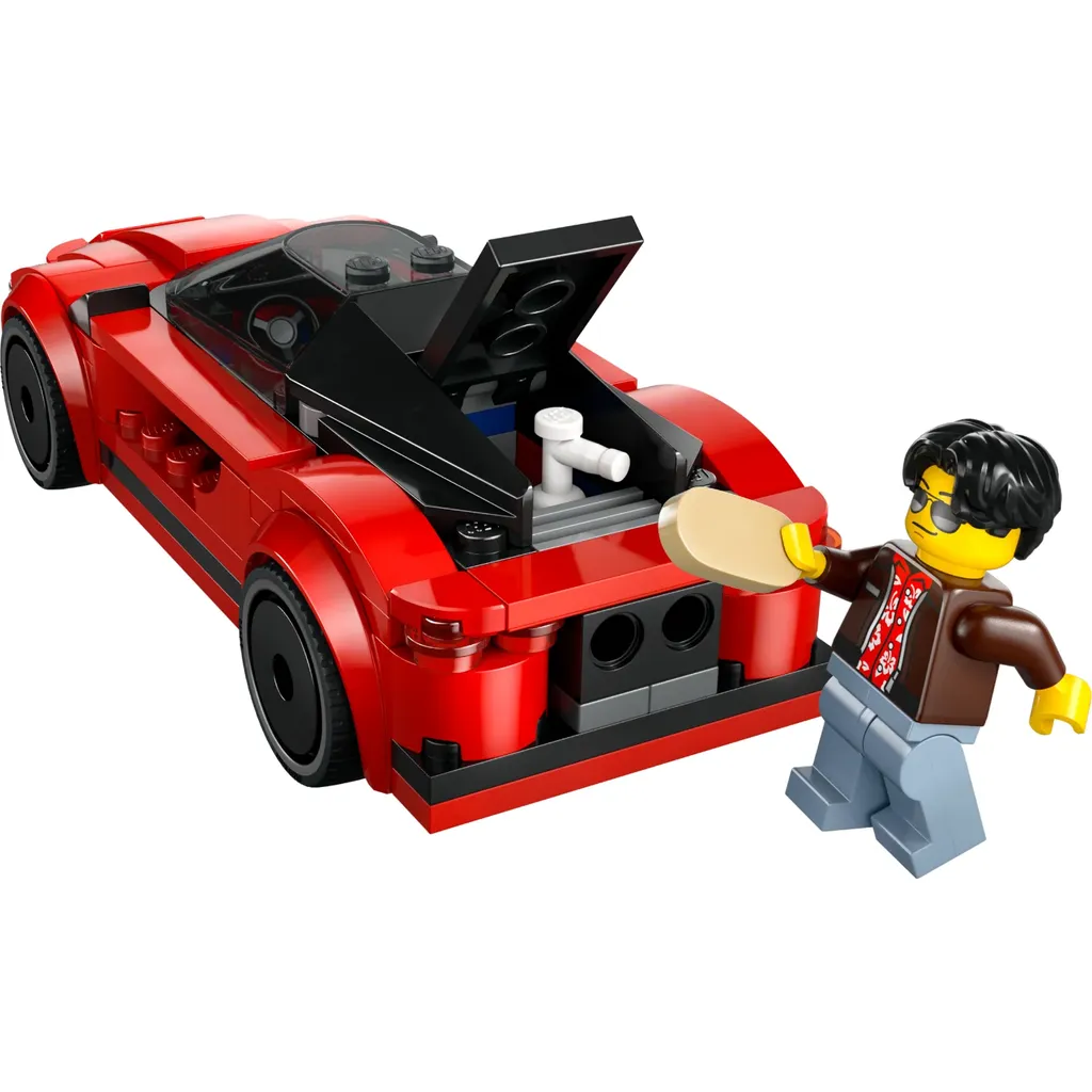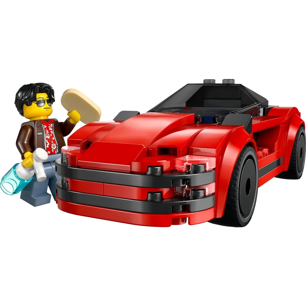 Sports Car, en rød sportsvogn, fra LEGO og City serien. Der medfølger en minifigur med tilbehør, nummereret 60448.