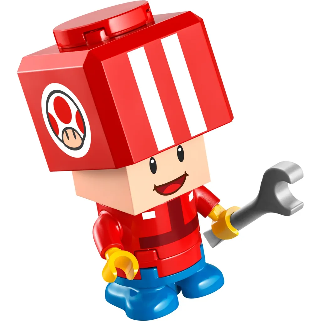 Ud over Toad og gokarten medfølger der tilbehør som grønne og røde skaller, bananskallen og en servicestation med målskive. Toad er klædt ud som flikker og har en bloknøgle (værktøj) i hånden.